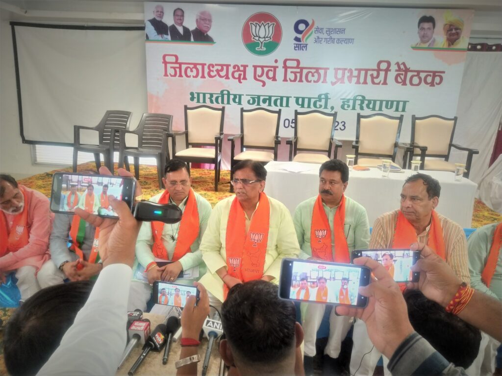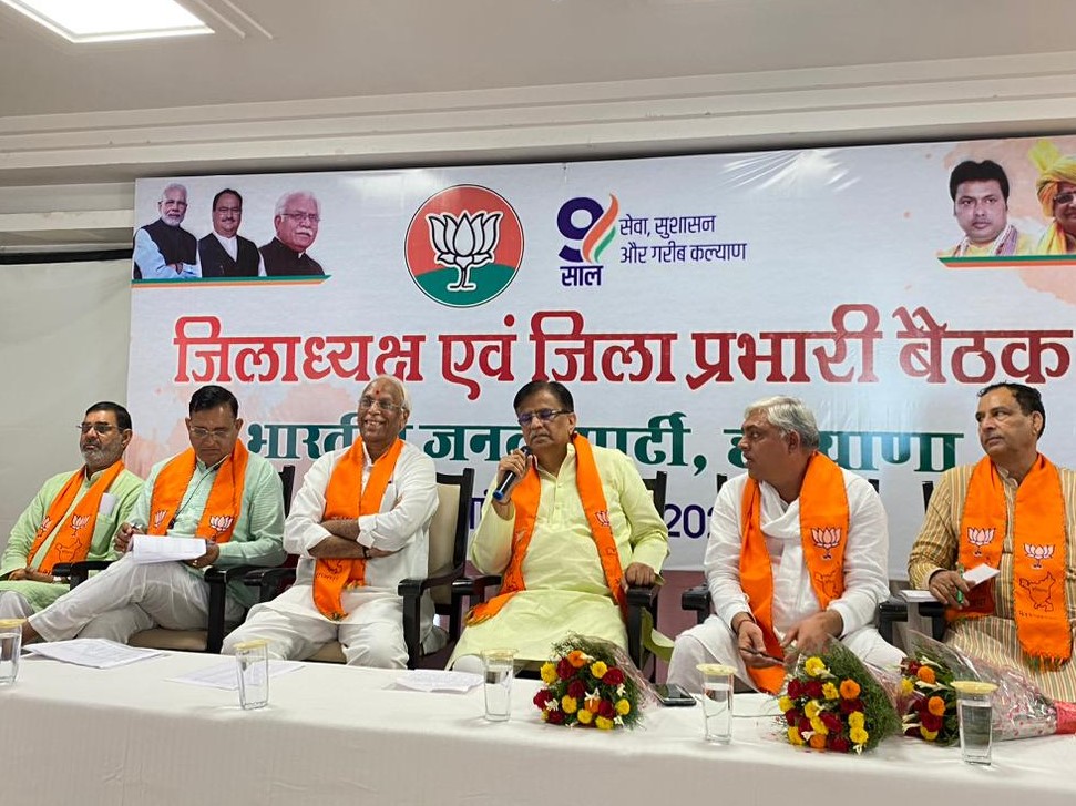 झज्जर के कबलाना गांव में भाजपा जिला अध्यक्षों व जिला प्रभारियों की बैठक में आगामी कार्यक्रमों को तैयार हुई रणनीति