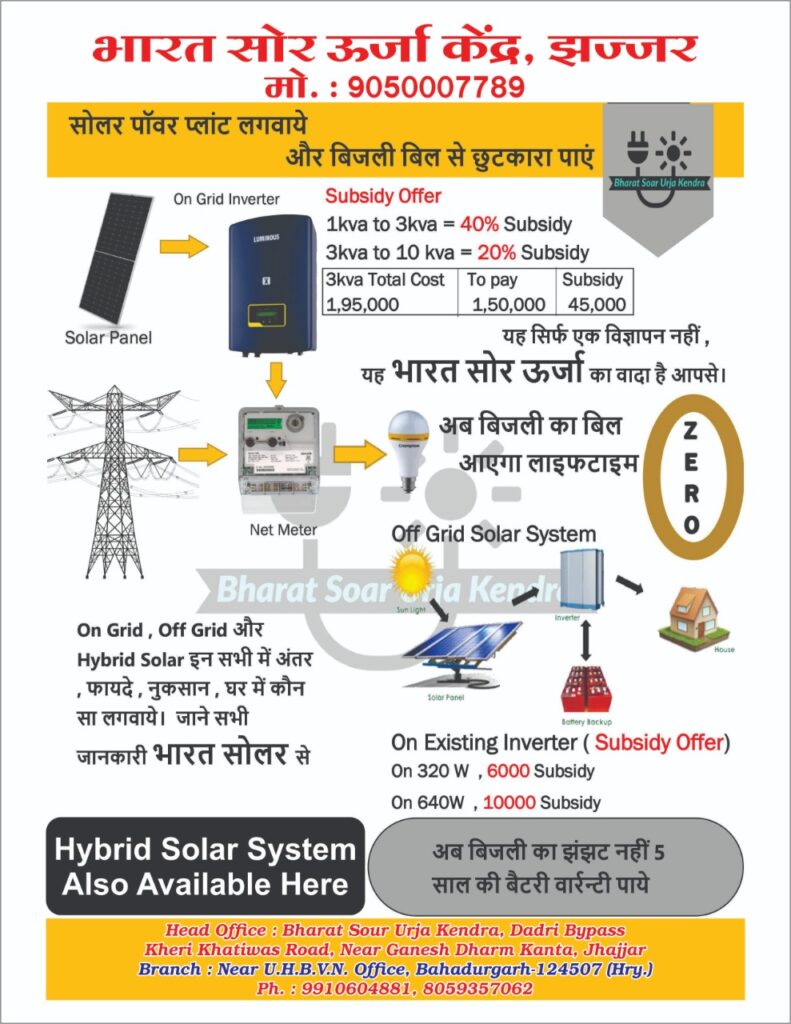 झज्जर, 05 जुलाई (अभीतक) : जिला मुख्यालय स्थित बिजली निगम के अधीक्षक अभियंता कार्यालय ऑपरेशन सर्कल स्थित कांफ्रेंस हाल में गुरुवार छह जुलाई को उत्तर हरियाणा बिजली वितरण निगम (यूएचबीवीएन) जोनल फोरम के चेयरमैन की अध्यक्षता में उपभोक्ता कष्ट निवारण फोरम की बैठक का आयोजन किया जाएगा। यह बैठक 06 जुलाई को सुबह 11 बजे से दोपहर दो बजे तक अधीक्षक अभियंता कार्यालय ऑपरेशन सर्कल झज्जर में होगी। प्रवक्ता ने बताया कि फोरम में उपभोक्ता की बिजली से जुड़ी समस्या का त्वरित समाधान सुनिश्चित किया जाएगा।