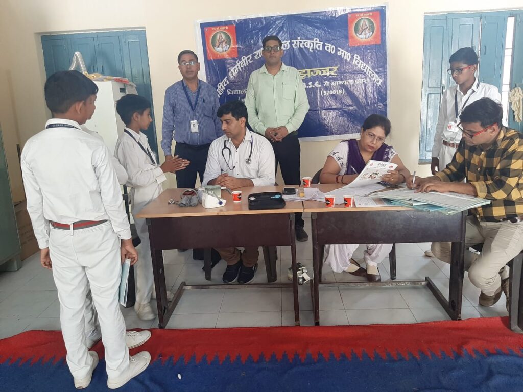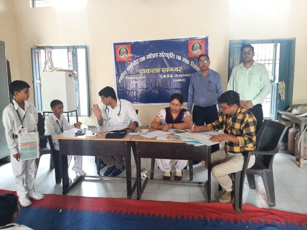 ढ़ाकला स्कूल में बच्चों की स्वास्थ्य जांच की डॉक्टर्स की टीम ने की जांच