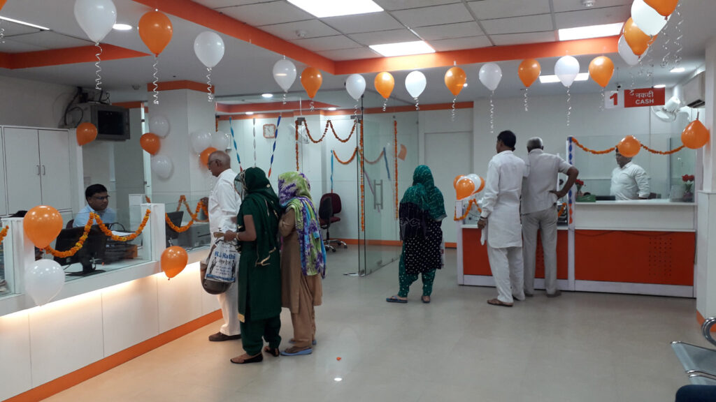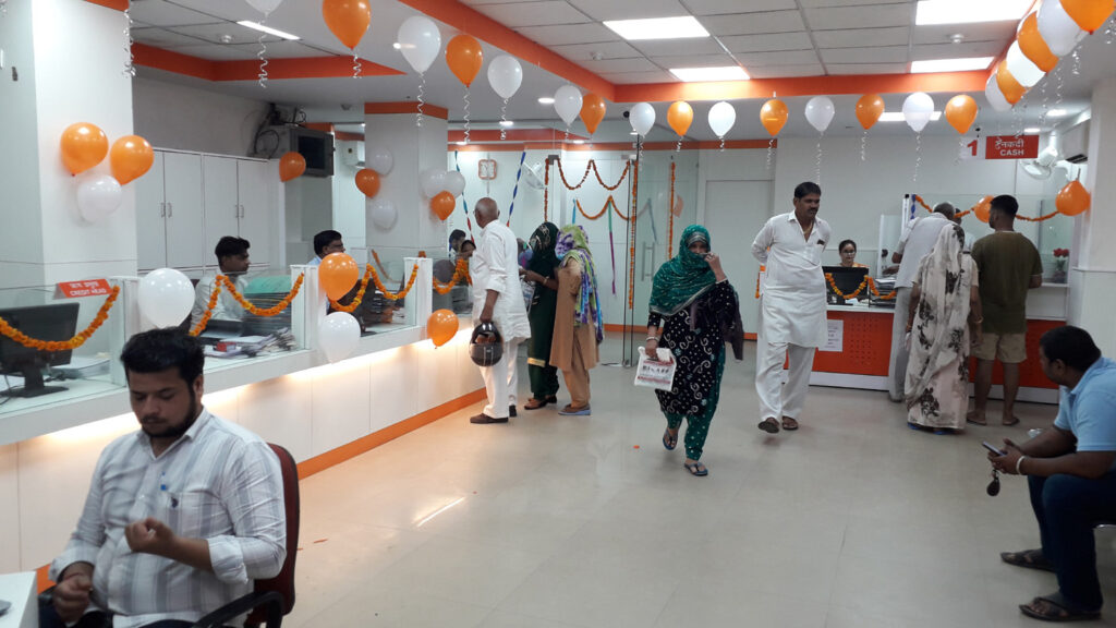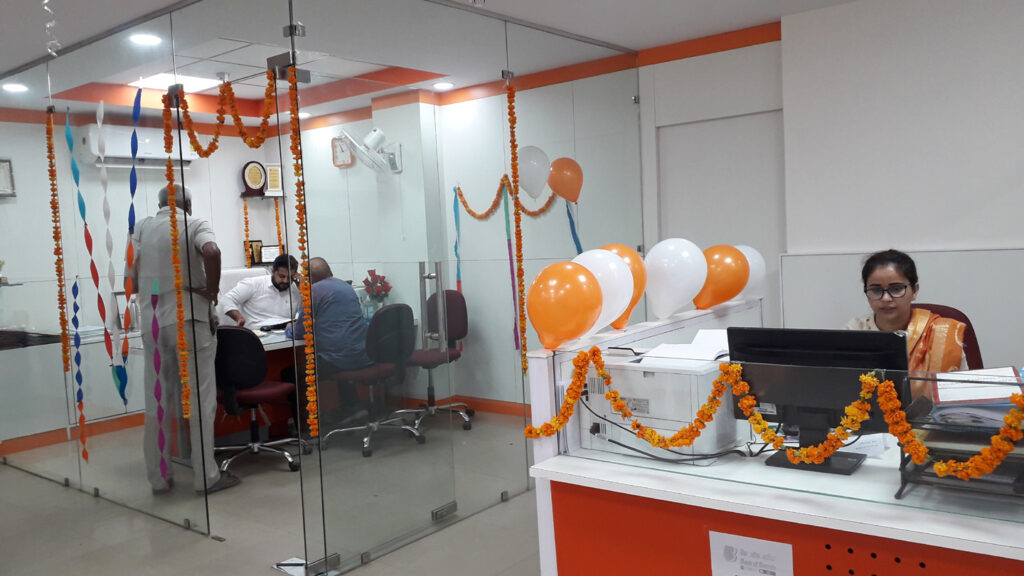 बैंक को फूल मालाओं एवं गुबारों से दुल्हन की तरह सजाया गया