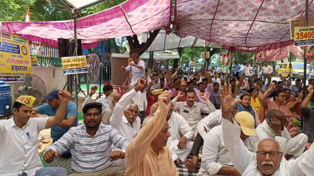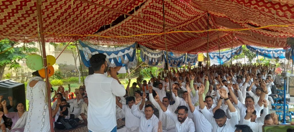 हड़ताल का 16वां दिन : शांति और अहिंसा का प्रतीक सफेद रंग के वस्त्र पहनकर की गांधीगिरी