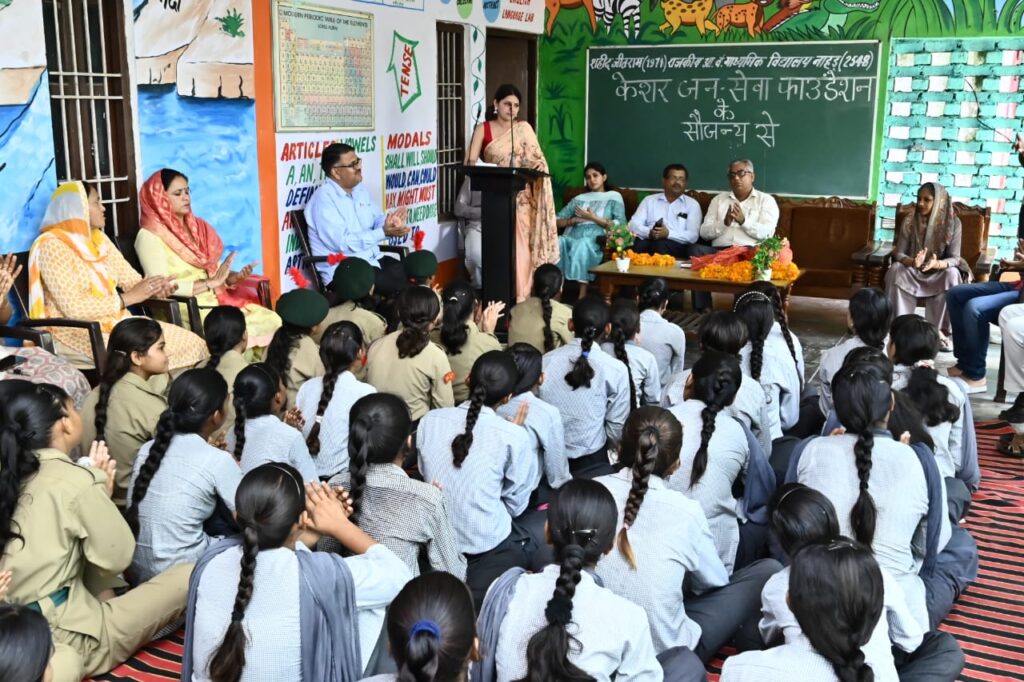 केसर देवी फाउंडेशन के तत्वाधान में विद्यालय की छात्राओं को सैनिटरी पैड्स किए गए वितरित