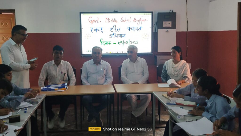 गांव बाघपुर में अभियान के अंतर्गत अपशिष्ट प्रबंधन, स्वच्छता प्रथाओं, स्वच्छ और स्वस्थ वातावरण पर स्कूली बच्चों ने बनाई पेंटिंग