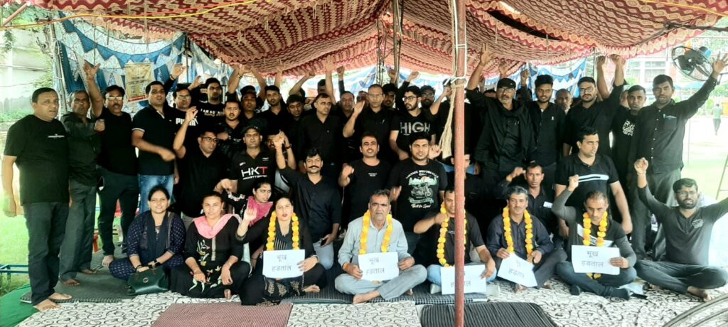 कर्मचारियों ने काले कपड़ों में भूख हड़ताल पर बैठकर सरकार के खिलाफ जताया रोष