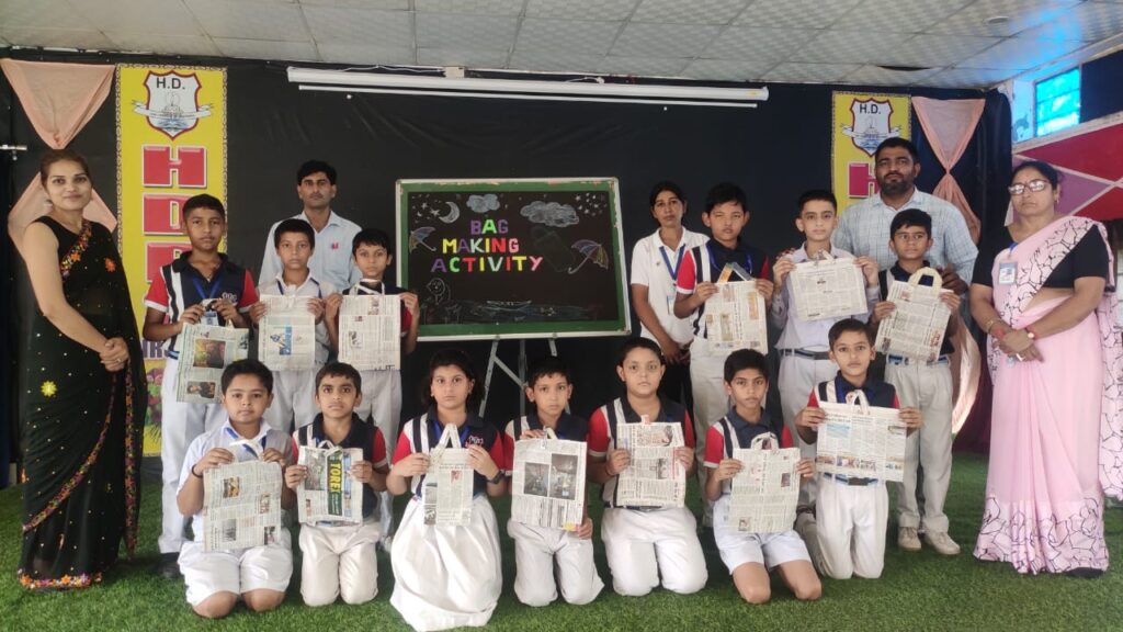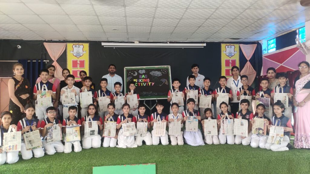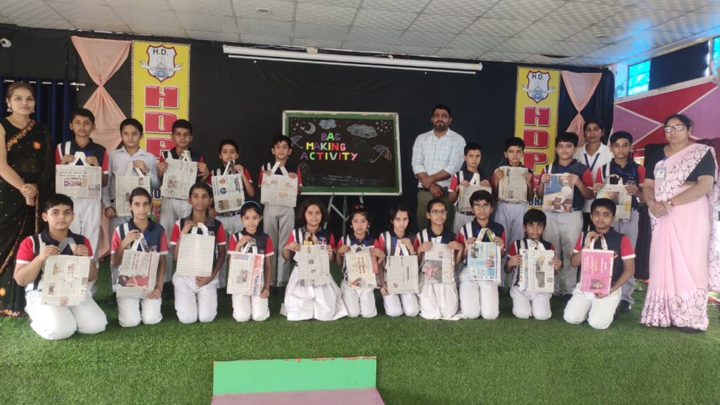 पोस्टर मेकिंग, पेंटिंग, स्लोगन लेखन व पेपर बैग बनाकर एचडी स्कूल के बच्चों ने लोगों को प्लास्टिक प्रदूषण से पृथ्वी को बचाने का दिया संदेश