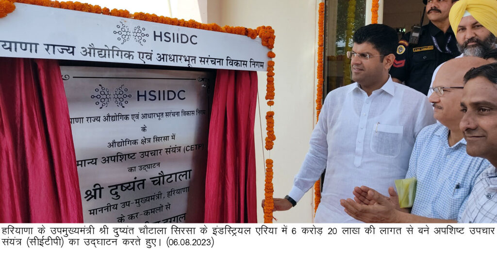 उपमुख्यमंत्री ने सिरसा में 6 करोड़ 20 लाख की लागत से बने अपशिष्ट उपचार संयंत्र का किया उदघाटन