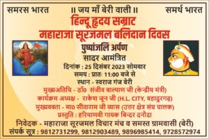 झज्जर, 10 दिसंबर, अभीतक:- डीसी कैप्टन शक्ति सिंह ने बताया कि ‘विकसित भारत संकल्प यात्रा सोमवार 11 दिसंबर को जिला के चार खंडों बहादुरगढ़, मातनहेल, साल्हावास और बेरी में पहुंचेगी और विभिन्न गांवों में आठ ग्राम पंचायतों को कवर करेगी। डीसी ने जनसंवाद कार्यक्रमों की विस्तार से जानकारी देते हुए बताया कि यह संकल्प यात्रा प्रातः 10 बजे से बहादुरगढ़ खंड के गांव बीरबरकताबाद जाटयान, मातनहेल खंड के गांव बिरोहड़, बेरी खंड के गांव पहाड़ीपुर और साल्हावास खंड के गांव ढाकला में पहुुंचेगी। इसी प्रकार दोपहर बाद दो बजे से बहादुरगढ़ खंड के गांव बीरबरकताबाद सैनियान, मातनहेल खंड के गांव खोरड़ा,बेरी खंड के गांव दूबलधन किरमान, और साल्हावास खंड के गांव सुबाना में पहुंचेगी और आमजन को केंद्र व राज्य सरकार की योजनाओं बारे जागरूक करेगी। उन्होंने बताया कि कार्यक्रम के दौरान मौके पर ही विभिन्न योजनाओं व सेवाओं की स्टॉल लगाकर पात्र व वंचितों को लाभान्वित किया जाएगा।