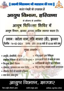 जटेला धाम में आज लगेगा आयुष चिकित्सा शिविर
