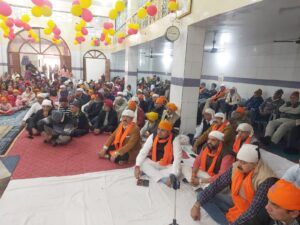 भाजयुमो प्रदेश उपाध्यक्ष नवीन बंटी साध संगत के साथ अखंड पाठ का श्रवण करते हुए।