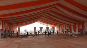 गांव माजरा भालखी में ‘विकसित भारत विकसित हरियाणा’ कार्यक्रम की तैयारियों में लगे कामगार।