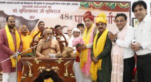 भाजपा प्रदेश अध्यक्ष मोहन लाल बड़ौली ने गुप्तिसागर जी मुनिराज को नमन कर लिया आशीर्वाद