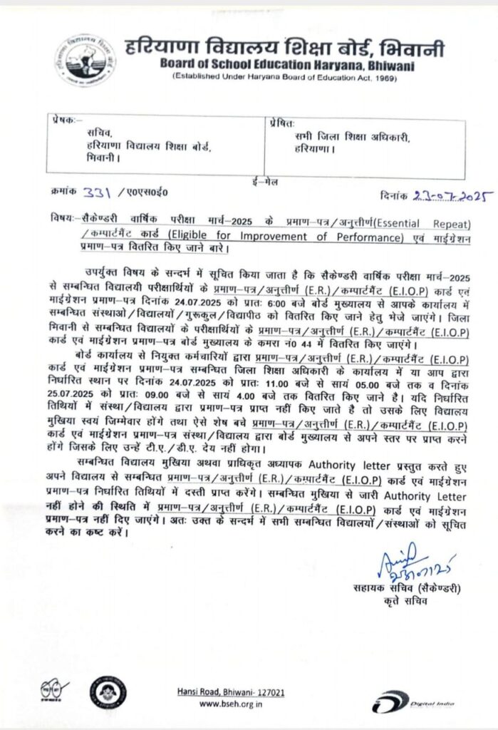 सीईटी के परीक्षार्थी के लिए हरियाणा कर्मचारी आयोग ने जारी की विशेष हिदायत – डीसी