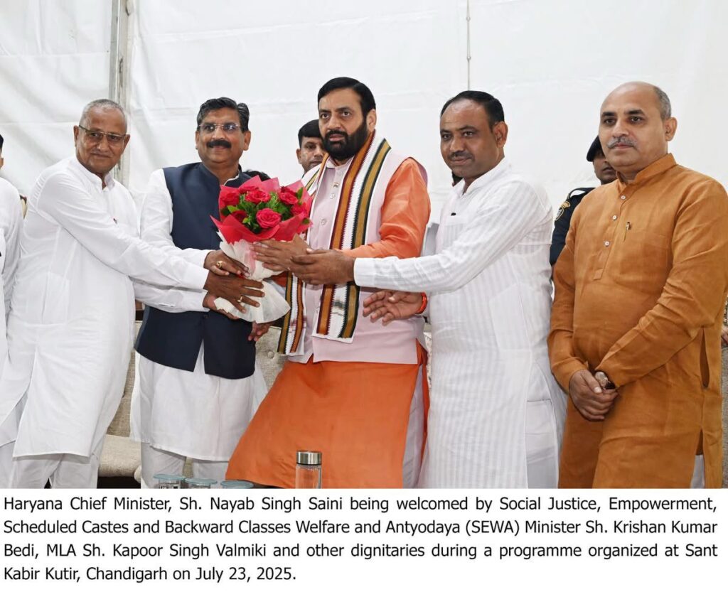 चंडीगढ़, 23 जुलाई, अभीतक:- हरियाणा के मुख्यमंत्री श्री नायब सिंह सैनी ने कहा कि प्रदेश की हर गली, हर मोहल्ले में स्वच्छता की जो सुगंध फैली है, उसमें सफाई कर्मचारियों की मेहनत छीपी हुई है। सफाई कर्मचारी सिर्फ कर्मचारी नहीं हैं, प्रदेश के शहरों और गांवों की रीढ़ हैं। मुख्यमंत्री श्री नायब सिंह सैनी ने यह बात आज चण्डीगढ स्थित मुख्यमंत्री आवास संत कबीर कुटीर में आयोजित कार्यक्रम में प्रदेश भर से आए सफाई कर्मचारियों को सम्बोधित करते हुए कही। संत कबीर जयती के अवसर पर सफाई कर्मचारियों के वेतन में 2100 रूपये बढौतरी होने पर आज प्रदेश भर से सफाई कर्मचारी मुख्यमंत्री का धन्यवाद करने आए थे। इस अवसर पर मुख्यमंत्री ने प्रदेशवासियों को शिवरात्रि की बधाई दी। श्री नायब सिंह सैनी ने कहा कि मैं सफाई कर्मचारियों को सलाम करता हूं, जो हर गली, मोहल्ले और सड़क को स्वच्छ और सुंदर बनाने में दिन-रात जुटे रहते हैं। उन्होंने कहा कि आप हमारे स्वास्थ्य के रक्षक व वातावरण के प्रहरी हैं। आपके बिना स्वच्छ हरियाणा की कल्पना भी असंभव है। आपका काम केवल कचरा उठाना नहीं, बल्कि स्वस्थ जीवन की नींव रखना है, जो हरियाणा के हर नागरिक के लिए अत्यंत आवश्यक है। मुख्यमंत्री ने कहा कि सीवर की सफाई का कार्य जोखिम भरा होता है। आप अपना जीवन खतरे में डालकर यह कार्य करते हैं। आपका यह योगदान सराहनीय है। स्वच्छता चाहे शरीर की हो या अपने आस पास के परिवेश की हो, इसका सीधा सम्बन्ध हमारे स्वास्थ्य से है। हमारे गौरव और गरिमा से है। हमारे सामाजिक एवं आर्थिक विकास से है। उन्होंने कहा कि राष्ट्रपिता महात्मा गांधी स्वच्छता को भगवान के बाद दूसरा स्थान देते थे। वे स्वयं झाडू लगाकर लोगों में सफाई के प्रति चेतना पैदा करते थे। इसी सोच को आगे बढ़ाते हुए, प्रधानमंत्री श्री नरेन्द्र मोदी ने महात्मा गांधी जी की जयंती पर 2 अक्तूबर, 2014 से ‘स्वच्छ भारत मिशन‘ की शुरुआत की, तो देश ने एक नया संकल्प लिया। इस संकल्प को पूरे समर्पण से निभाने का श्रेय सबसे पहले सफाई कर्मचारियों को जाता है। आप न सिर्फ हमारे गांव व शहरों की सफाई करते हैं, बल्कि देश की सोच को भी स्वच्छ बनाते हैं। श्री नायब सिंह सैनी ने कहा कि ‘सबसे स्वच्छ शहर सम्मान‘ के तहत सोनीपत को ‘मिनिस्टीरियल स्टार‘ अवॉर्ड मिला है। इसी तरह 50 हजार से 3 लाख की आबादी वाली श्रेणी में करनाल शहर ने देश में तीसरा स्थान हासिल किया है। मुख्यमंत्री ने कहा कि प्रदेश सरकार ने शहरी सफाई कर्मचारियों का वेतन बढ़ाकर 17 हजार रुपये मासिक तथा ग्रामीण सफाई कर्मचारियों का वेतन भी बढ़ाकर 16 हजार रुपये मासिक किया गया है। उन्होंने कहा कि सफाई कर्मियों को उनकी ड्यूटी पर मृत्यु होने की स्थिति में 5 लाख रुपये और सीवरेज में काम करते समय म
