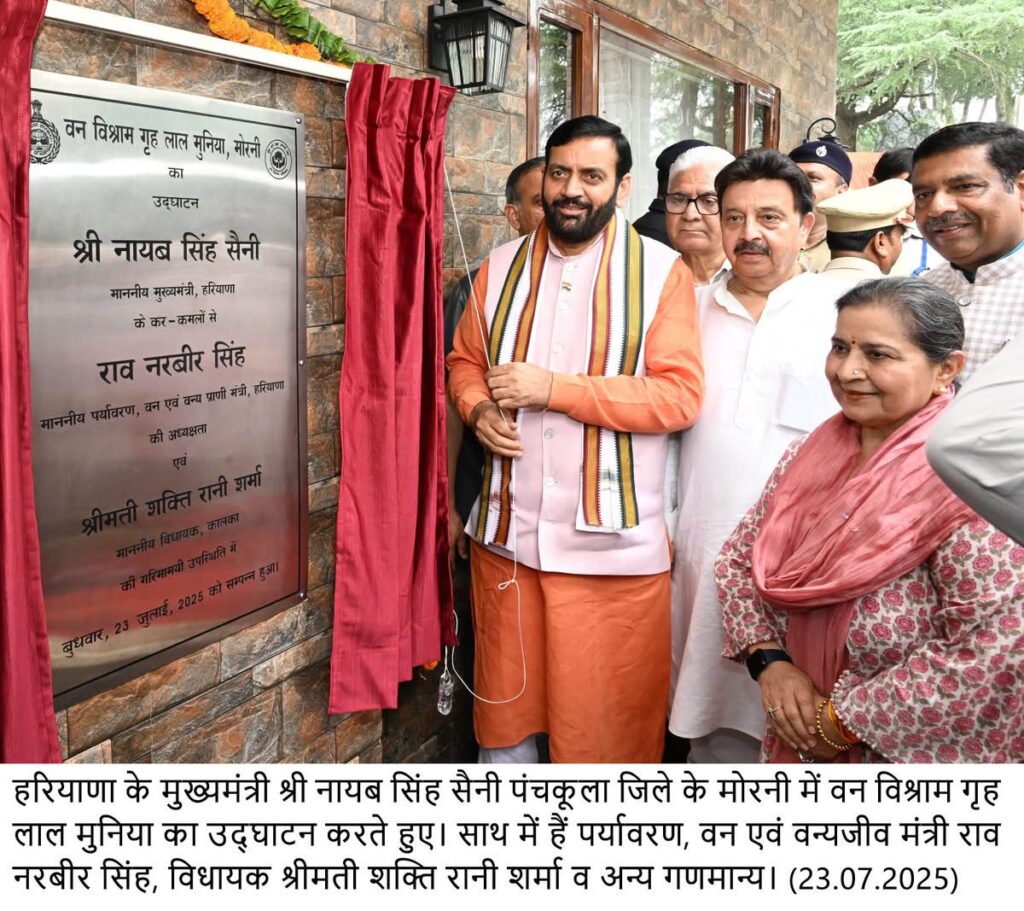 चंडीगढ़, 23 जुलाई, अभीतक:- हरियाणा सरकार द्वारा राज्य में पर्यटन को बढ़ावा देने और प्राकृतिक संसाधनों का सतत उपयोग सुनिश्चित करने की दिशा में लगातार प्रयास किए जा रहे हैं। इसी कड़ी में मुख्यमंत्री श्री नायब सिंह सैनी ने बुधवार को पंचकूला जिले के मोरनी क्षेत्र में नवीनीकृत नेचर कैंप थापली का लोकार्पण किया। इस अवसर पर उन्होंने नवीनीकृत इको-कुटीर का भी उद्घाटन किया। साथ ही उन्होंने आयुर्वेदिक पंचकर्मा केंद्र का निरीक्षण कर वहां उपलब्ध स्वास्थ्य सेवाओं का भी जायजा लिया। इस अवसर पर पर्यावरण, वन एवं वन्यजीव मंत्री राव नरबीर सिंह और कालका की विधायक श्रीमती शक्ति रानी शर्मा भी उपस्थित रहे। मुख्यमंत्री ने यहां कालका से कलेसर तक बनाए गए नेचर ट्रेल पर ट्रैकिंग के लिए एक दल को झंडी दिखाकर रवाना किया। यह ट्रैक हरियाणा के युवाओं को साहसिक पर्यटन की ओर आकर्षित करेगा और राज्य को एडवेंचर व नेचर टूरिज्म हब के रूप में नई पहचान दिलाने में मदद करेगा। मुख्यमंत्री ने कहा कि साहसिक पर्यटन आज की युवा पीढ़ी की रुचि से जुड़ा हुआ क्षेत्र है और इससे न केवल पर्यटन का विस्तार होगा बल्कि स्थानीय युवाओं के लिए रोजगार के नए अवसर भी सृजित होंगे।