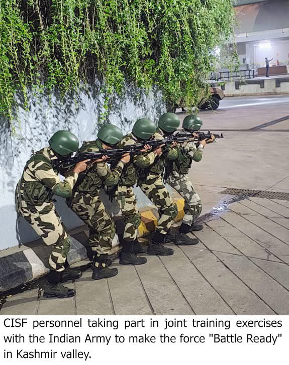 सीआईएसएफ कश्मीर घाटी में भारतीय सेना की विशेष यूनिट्स के साथ बड़े पैमाने पर कर रहा प्रशिक्षण का आयोजन