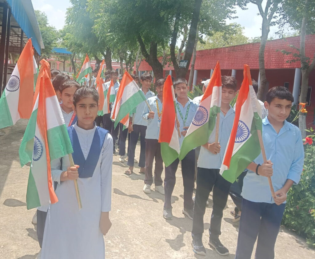 रेवाड़ी जिला के गांव मोहम्मदपुर के राजकीय माध्यमिक विद्यालय में तिरंगा यात्रा में भागीदार बनते विद्यार्थी।