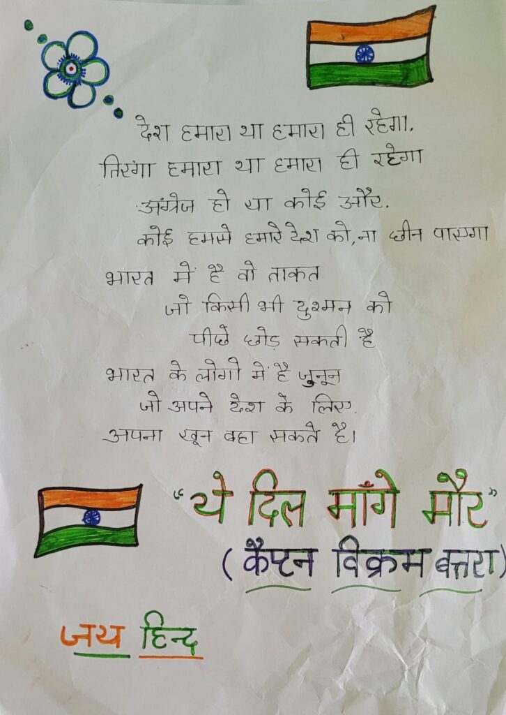जिले के राजकीय विद्यालयों में आयोजित जागरूकता गतिविधियों के तहत पोस्टर मेकिंग के माध्यम से दिया देशभक्ति का संदेश।