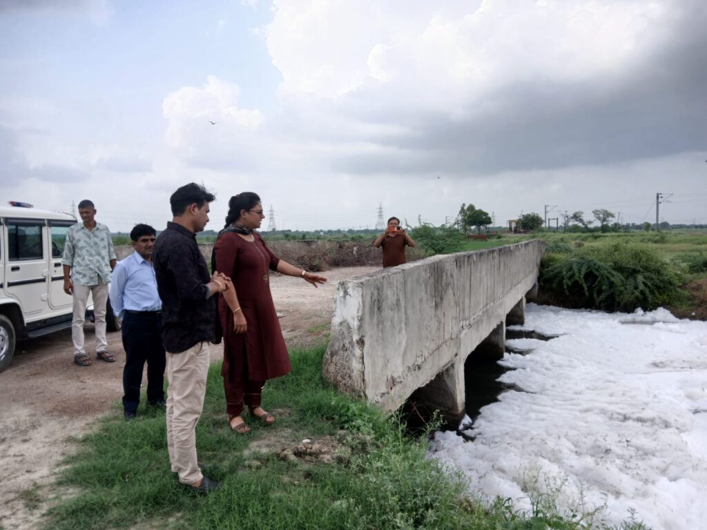 डीघल- भंबेवा मार्ग पर सिंचाई विभाग के अधिकारियों के साथ ड्रेन का निरीक्षण करते हुए एसडीएम रेणुका नांदल।