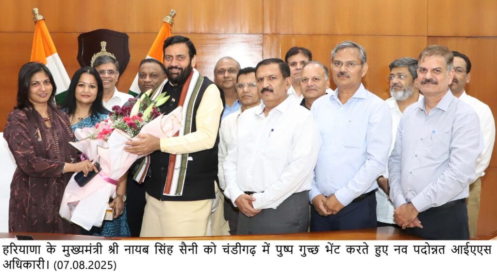 मुख्यमंत्री नायब सिंह सैनी से नव पदोन्नत भारतीय प्रशासनिक सेवा अधिकारियों ने शिष्टाचार भेंट की