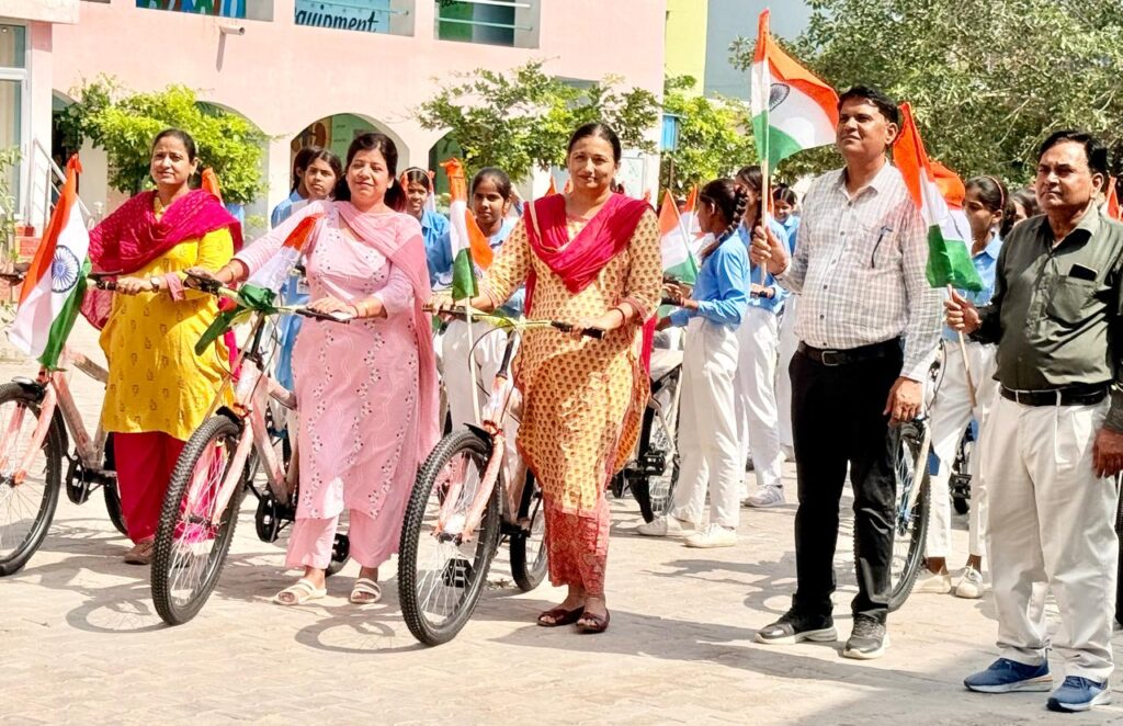 जिला में स्कूल विद्यार्थियों द्वारा निकाली जा रही रैली व साईकिल तिरंगा यात्राएं