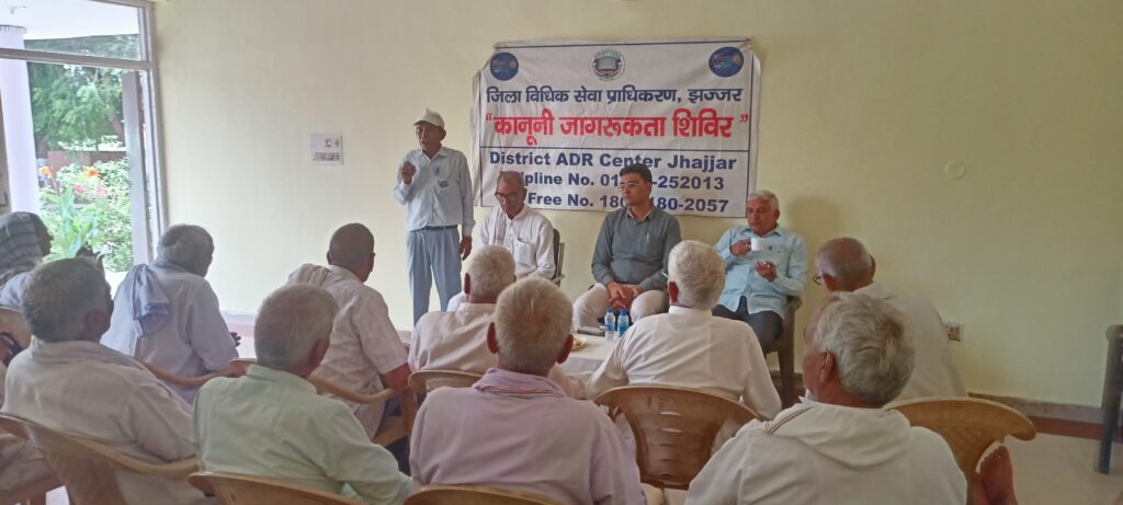 झज्जऱ, 09 अगस्त, अभीतक: हरियाणा राज्य विधिक सेवा प्राधिकरण पंचकूला के निर्देशानुसार जिला विधिक सेवा प्राधिकरण झज्जर के अध्यक्ष एवं जिला एवं सत्र न्यायाधीश अजय तेवतिया के मार्गदर्शन तथा सीजेएम सह सचिव विशाल की अध्यक्षता में विश्व वरिष्ठ नागरिक दिवस के अवसर पर एक विशेष कार्यक्रम चाय पर चर्चा का आयोजन सीनियर सिटीजन क्लब सेक्टर 6 झज्जर में किया गया। सीनियर सिटीजन क्लब में रह रहे वरिष्ठ नागरिकों के सम्मान स्वास्थ्य और जागरूकता पर विशेष ध्यान दिया गया। सीजेएम विशाल ने कहा कि वरिष्ठ नागरिक समाज की अनमोल धरोहर हैं जिनके अनुभव और आशीर्वाद से नई पीढ़ी दिशा पाती है। उन्होंने बताया कि जिला विधिक सेवा प्राधिकरण का उद्देश्य न केवल कानूनी सहायता प्रदान करना है बल्कि वरिष्ठ नागरिकों के अधिकारों सम्मान और कल्याण को सुनिश्चित करना भी है। इस प्रकार के कार्यक्रम बुजुर्गों के मानसिक और सामाजिक स्वास्थ्य के लिए अत्यंत आवश्यक हैं । उन्होंने बताया कि नालसा हेल्पलाइन नंबर 15100 पर फोन करके नागरिक मुफ्त कानूनी सहायता प्राप्त कर सकते हैं। कार्यक्रम में अधिकार मित्र कर्मजीत छिल्लर, शिव धन, प्रेमवती ने भाग लिया। अधिकार मित्रो ने वरिष्ठ नागरिकों को नालसा, (राष्ट्रीय विधिक सेवा प्राधिकरण,) हालसा (हरियाणा राज्य विधिक सेवा प्राधिकरण) तथा सरकार द्वारा चलाई जा रही विभिन्न कल्याणकारी योजनाओं के बारे में विस्तृत जानकारी दी। इसमें वरिष्ठ नागरिक पेंशन योजना, वृद्ध आश्रम सुविधा, स्वास्थ्य बीमा योजनाएं, मुफ्त कानूनी सहायता, और वरिष्ठ नागरिकों के संरक्षण से संबंधित कानून शामिल थे। अधिकार मित्र ने कहा कि 13 सितंबर 2025 को स्थानीय कोर्ट परिसर में राष्ट्रीय लोक अदालत का आयोजन किया जाएगा जिसमें नागरिक अपने लंबित मुकदमों को रखकर जल्द से जल्द न्याय प्राप्त कर सकते हैं इसलिए सभी नागरिक अपने लंबी मुकदमों को राष्ट्रीय लोक अदालत में रखें और इसका फायदा उठाएं।