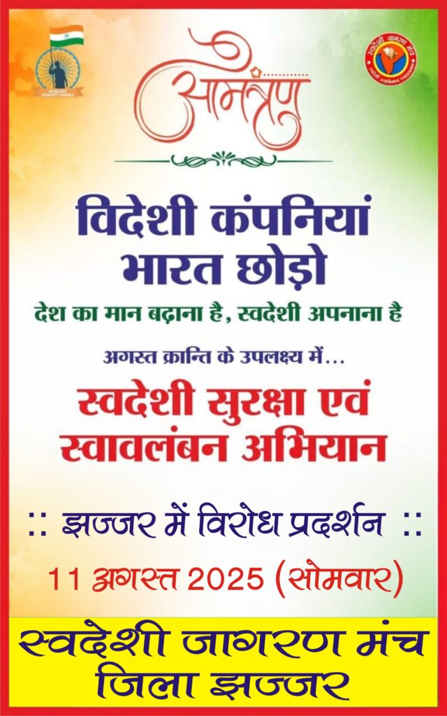 11 अगस्त को झज्जर में प्रातः 10 बजे विरोध प्रदर्शन किया जाएगा