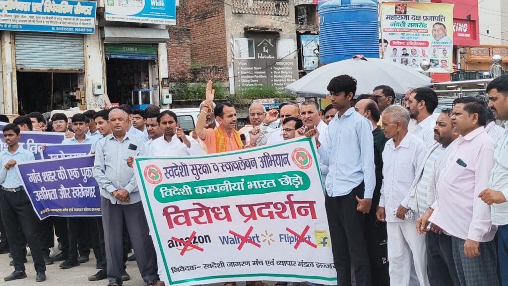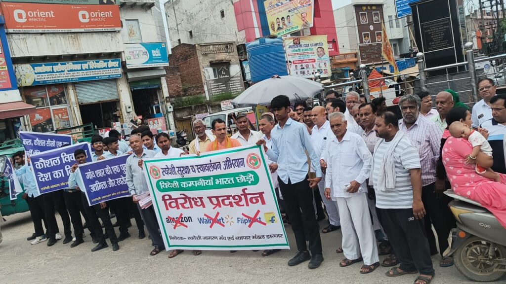 झज्जर, 11 अगस्त, अभीतक: झज्जर नगर में स्वदेशी जागरण मंच द्वारा सोमवार को विदेशी कंपनियों व विदेशी वस्तुओं के विरोध में प्रदर्शन किया गया। स्वदेशी जागरण मंच के प्रान्त संगठक श्री कुलदीप पुनिया मुख्यवक्ता रहे। जटिया धर्मशाला से विरोध प्रदर्शन शुरू हुआ, जो डॉ अम्बेडकर चैक, मेन बाजार, हरिपुरा मौहल्ला, सिलानी गेट होते हुए राव तुलाराम चैक पर वक्ताओं के सम्बोधन के साथ सम्पन्न हुआ। डॉ अम्बेडकर चैक व तुलाराम चैक पर सम्बोधन के कार्यक्रम रहे। विरोध प्रदर्शन का स्वदेशी जागरण मंच जिला संयोजक मनमोहन खंडेलवाल व व्यापार मंडल प्रधान राकेश अरोड़ा ने संयुक्त रूप से नेतृत्व किया। स्वदेशी जागरण मंच के प्रान्त संगठक कुलदीप पूनिया ने कहा कि स्वदेशी जागरण मंच प्रधानमंत्री श्री नरेंद्र मोदी जी द्वारा स्वदेशी के आह्वान का स्वागत करता है। उन्होंने कहा कि जहां प्रधानमंत्री ने कहा है कि स्वदेशी उत्पादों की खरीद और बिक्री भी राष्ट्र की सच्ची सेवा है। 1991 से ही स्वदेशी जागरण मंच स्वदेशी अपनाने के लिए जनता में जागरूकता पैदा करने का काम कर रहा है। मंच का दृढ़ विश्वास है कि हमारा राष्ट्र स्वदेशी और आत्मनिर्भरता के आधार पर ही समृद्ध हो सकता है। उन्होंने कहा कि स्वदेशी जागरण मंच का मानना है कि मूल्यवान विदेशी मुद्रा बचाने के और भी कई उपाय हो सकते हैं। सामान्य रूप से विदेशी वस्तुओं का न्यूनतम उपयोग और चीन तुर्की व अन्य विरोधी देश की वस्तुओं और सेवाओं का बहिष्कार करना कुछ अपवादों को छोड़ विदेशी विश्वविद्यालय में अध्ययन का बहुत त्यागना स्थानीय उत्पादों का उपयोग और कार्यक्रम को बढ़ावा देना न केवल मूल्यवान विदेशी मुद्रा बचाने में सहायक हो सकता है। बल्कि विकास के विकेंद्रीकृत मॉडल के आधार पर स्थानीय स्तर पर रोजगार आजीविका और लोगों के कल्याण को भी बढ़ावा दे सकता है। प्रांत संगठक कुलदीप ने ऑनलाइन खरीददारी न करके स्थानीय दुकानदारों से ही सामान खरीदने की वकालत की। राकेश अरोड़ा ने विदेशी व ऑनलाइन से परहेज की बात कही और कहा कि स्वदेशी खरीदें, लोकल दुकानदार से ही खरीददारी करें। प्रांत संगठक ने सभी को स्वदेशी का संकल्प भी दिलाया। प्रदर्शन में खटीक समाज प्रदेश अध्यक्ष प्यारेलाल कटारिया, दा हाईट्स संस्था निदेशक नविन्द्र कुमार, सैनी समाज प्रधान रघुबीर सैनी, जांगिड़ समाज प्रधान नंदकिशोर जांगड़ा, स्वर्णकार सभा प्रधान डॉ सुभाष वर्मा, जटिया समाज प्रधान रामधन, सब्जी मंडी प्रधान सुनील यादव, सैन समाज सभा महासचिव देवेंद्र सैन, भारत स्वाभिमान प्रतिनिधि कृष्णदत्त जांगड़ा, कमल कुमार, नगर सह संयोजक सुरेंदर कुमार, प्रदीप जांगड़ा, भोलू जांगड़ा, करणवीर, बिजेन्दर, ताराचंद भूटानी, डॉ हरी सैनी, हैप्पी, ईश्वर सिंघल, सतप