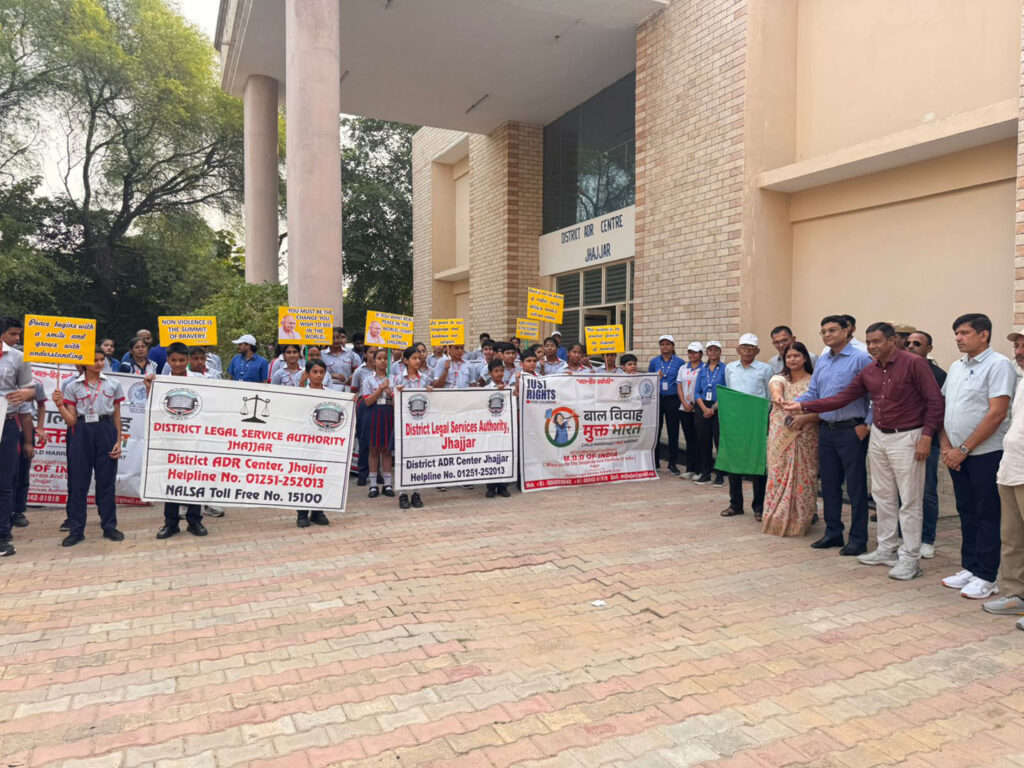 झज्जर, 02 अक्तूबर, अभीतक: हरियाणा राज्य विधिक सेवा प्राधिकरण के निर्देशानुसार जिला विधिक सेवा प्राधिकरण झज्जर अध्यक्ष एवं जिला एवं सत्र न्यायाधीश अजय तेवतिया के मार्गदर्शन में मुख्य न्यायिक दंडाधिकारी एवं सचिव विशाल के कुशल नेतृत्व में, एमडीडी आफ इंडिया संस्था एवं श्रम विभाग के संयुक्त तत्वावधान में महात्मा गांधी जयंती के अवसर पर झज्जर में एक शांति मार्च का आयोजन किया गया। इस मार्च का आयोजन महात्मा गांधी के आदर्शों और उनके द्वारा प्रतिपादित शांति एवं अहिंसा के संदेश को जन जन तक पहुचाने के उद्देश्य से किया गया। मुख्य अतिथि मुख्य न्यायिक मजिस्ट्रेट एवं सचिव जिला विधिक सेवा प्राधिकरण विशाल रहे। विशिष्ट अतिथि के रूप में जिला शिक्षा अधिकारी राजेश कुमार रहे। मुख्यअतिथि ने शांति मार्च को हरी झंडी दिखाकर औपचारिक शुरुआत हुई। इस मार्च में काफी संख्या में विद्यार्थीयों ने उत्साह और अनुशासन के साथ भाग लिया। शांति मार्च जिला विधिक सेवा प्राधिकरण झज्जर के एडीआर सैंटर से लेकर सिलानी गेट, यादव धर्मशाला और पुरानी तहसील रोड से होते हुए अहिंसा परमो धर्म, वन्दे मातरम्, बेटी बचाओ बेटी पढ़ाओ, हम सब ने ठाना है, बाल विवाह मिटाना है और बाल श्रम अभिआप, कानूनी अपराध है नारे लगाते हुए महर्षि दयानंद स्टेडियम में संपन्न हुआ। मुख्य न्यायिक दंडाधिकारी ने कहा कि महात्मा गांधी जी हम सब के प्रेरणास्रोत रहे हैं तथा हम सबको उनके द्वारा दिखाए गए रास्ते पर चलना चाहिए तथा आज इस शांति मार्च को निकालने का उद्देश्य भी यही है कि लोगों मे शांति व सद्भावना के साथ जीवन यापन करें। कार्यक्रम श्रम विभाग से रोशन लाल लेबर इंस्पेक्टर, जिला विधिक सेवा प्राधिकरण से सोमबीर, आकाश,पैरा लीगल वालिंटियर कर्मजीत छिल्लर, शिवधन, प्रकाश धनखड़ एम डी डी आफ इंडिया संस्था से जिला समन्वयक मनोज कुमार, सामुदायिक सामाजिक कार्यकर्ता संदीप जांगड़ा, पुलिस विभाग से अधिकारी, कर्मचारी शामिल रहे।