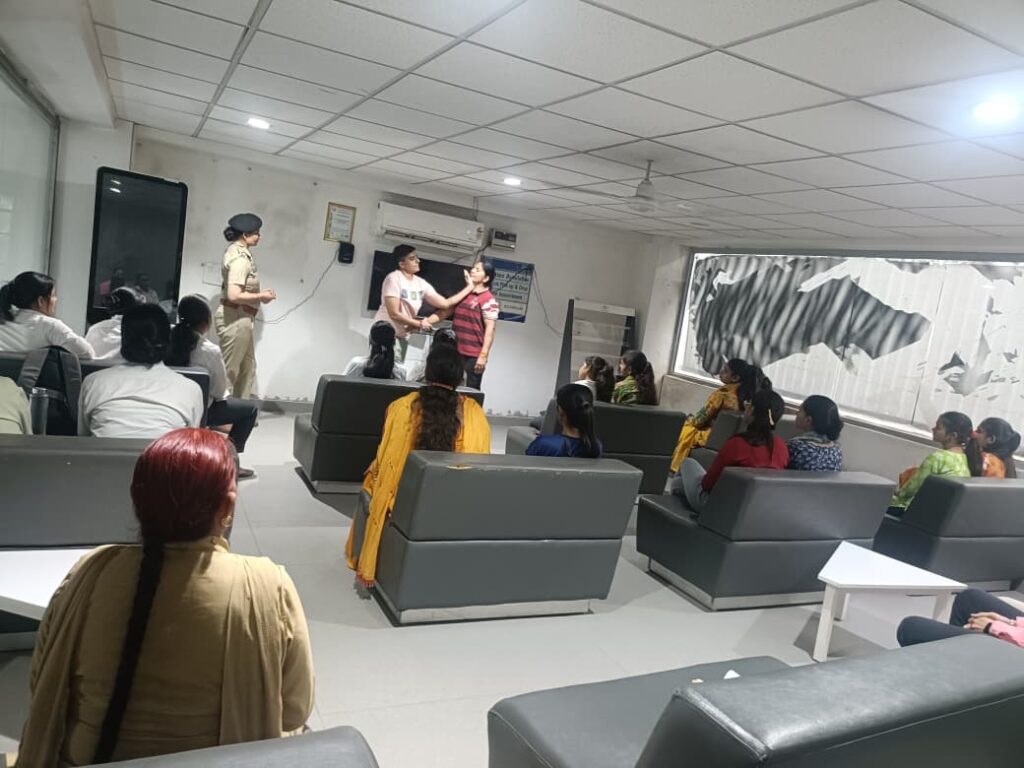 हुंडई कंपनी शौरुम बहादुरगढ़ की महिला कर्मचारियों को चैकी प्रभारी और दुर्गा शक्ति की टीम ने ट्रिप मॉनिटरिंग सेवा डायल 112 और आत्मरक्षा के गुर बताए