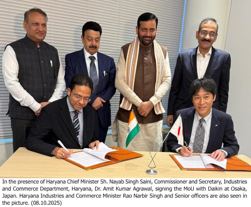 ओसाका में मुख्यमंत्री नायब सिंह सैनी की उपस्थिति में हरियाणा सरकार और डाइकिन के बीच हुआ एमओयू