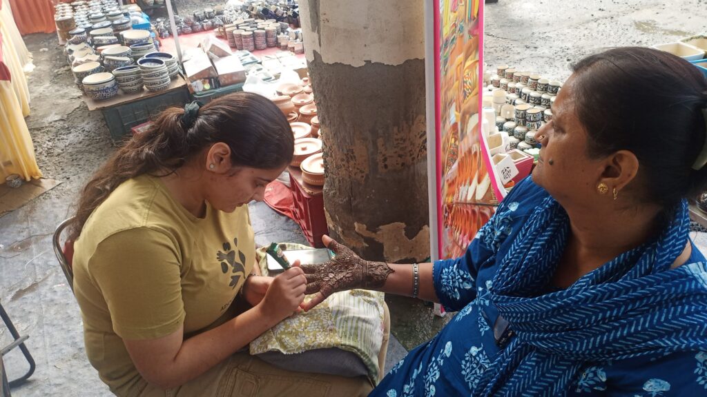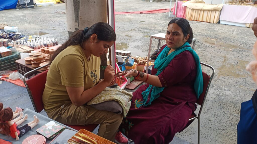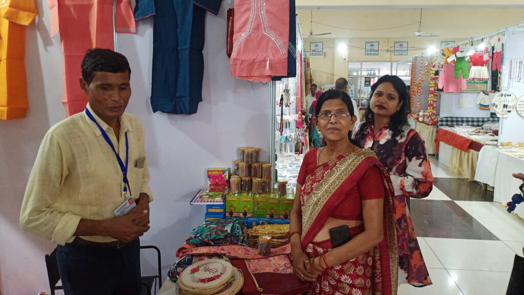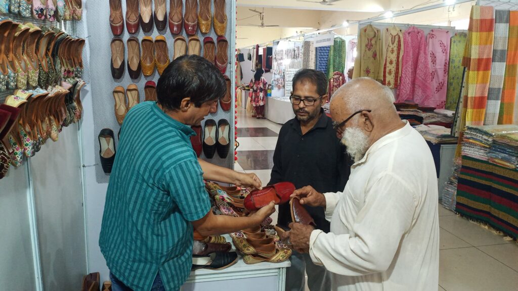 बहादुरगढ़ नाबार्ड हस्तशिल्प मेला 13 अक्टूबर तक कम्युनिटी सेंटर सेक्टर 6 में लगा बहादुरगढ़, 08 अक्तूबर, अभीतक: बहादुरगढ़ नाबार्ड हस्तशिल्प मेला 13 अक्टूबर तक कम्युनिटी सेंटर सेक्टर 6 में लगा हुआ है। करवा चैथ पर विशेष आयोजन किया जा रहा है। जहां मेहंदी, चूड़ियां, सूट -साड़ी अन्य हस्तशिल्प एवं हथकरघा कलाएं मुख्य रूप से आकर्षण का केंद्र बनी हुई है। मौसम के खुलते ही सुबह से ही महिलाएं लाख की चूड़ियां खरीदने वअपने हाथों पर मेहंदी सजाने लगी स जबकि बनारसी साड़ी, पंजाब के सूट ,उत्तर प्रदेश उत्तराखंड की ऊनि सोल, वह बंगाल से आए मोतियों के गहने महिलाएं खरीदने में व देखने में लगी हुई है। बहादुरगढ़ के ही शिल्पकार अशोक कुमार ने बताया कि हरियाणवी जूती लोग पसंद कर रहे हैं जो की लेदर से बनी हुई है और उसे पर धागे से नकाशी भी की हुई है। महाराष्ट्र से आये बाटिक के शिल्पकार अनिल पांडे ने बताया कि हरयाणवी कल्चर वास्तव में जैसा सुना था, वैसा मिला यहां के लोग खुले दिल केे हैं। उनको यहां की खड़ी बोली बहुत पसंद आई सबसे बड़ा अपनापन और यहां कई जॉइंट फैमिली संयुक्त परिवार की जो परंपरा है। उन्होंने याद करते हुए भावुक हो गए। उन्होंने बताया मेरी उम्र 63 वर्ष की है और मैं महाराष्ट्र के साउथ मुंबई में जन्म पले लेकिन ऐसा संयुक्त परिवार मुंबई में देखने को नहीं मिलता। जहां बहादुरगढ़ के हरियाणा में मुझे घर-घर में मिला। बाटिक प्रिंट समझ रहे हैं और पसंद करने पर खरीद भी रहे हैं। जो की स्किन को बहुत सी बीमारियों से बचाता है क्योंकि यह नेचुरल डाई और प्योर कॉटन है। हरियाणा के पलवल से आए बालियान प्रोड्यूसर कंपनी नाबार्ड की तरफ से मनोज वर्मा जी ने बताया कि हमारे पास कॉटन में बेडशीट, जयपुरी, रजाई सूजनी दोहर व अन्य जैकेट हैं। हम लोग सेल्फ हेल्प ग्रुप के माध्यम से पलवल के गांव में महिलाओं द्वारा प्रोडक्शन करते हैं और उसे नाबार्ड के सहयोग से पूरे भारतवर्ष में बिक्री करते हैं और वह पैसा ग्रामीण महिलाओं को उनके खाते के द्वारा पहुंचा दिया जाता है। जिससे वह अपनी जीविका कमाते हैं। महेंद्रगढ़ जिले से सतनाली एग्रो फार्मर प्रोड्यूसर कंपनी जो कि नाबार्ड के सहयोग से काम करती है सतनाली से आए संजय कुमार ने बताया कि हमारे यहां आटा, तेल, मसाला, बाजरे के लड्डू, नाबार्ड की सहायता से पूरे भारतवर्ष में मेलों में बेचे जाते हैं स हमारे यहां 35 महिलाएं काम करती है जो खेत से लेकर फसल उगाने से लेकर उसकी अंतिम रूप देने तक माल तैयार करके पैक करने तक एक प्रक्रिया के माध्यम से तैयार किया जाता है स फिर नाबार्ड के माध्यम से बिक्री की जाती है जो पैसा हम सेल कर लेते हैं वह कंपनी द्वारा उनके खातों में वापस भेज दी जाती है जो कि उनकी शुद्ध कमाई होती है। रेवाड़ी जिले से आ