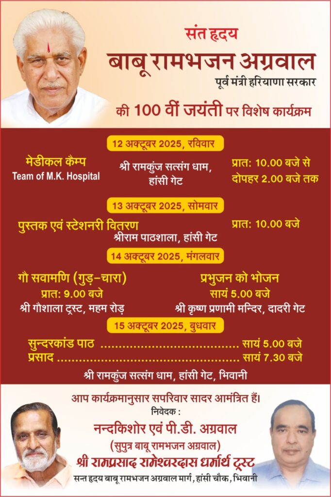 भिवानी़, 09 अक्तूबर, अभीतक: हरियाणा के 11 नगर निगम वाले शहरों में भारतीय जनता युवा मोर्चा द्वारा 11 अक्टूबर को राज्यव्यापी स्वच्छता (श्रमदान) महाअभियान चलाया जाएगा। यह अभियान भाजपा सरकार के सुशासन के 11 गौरवशाली वर्ष पूर्ण होने के उपलक्ष्य में आयोजित किया जा रहा है। इस अभियान की शुरुआत मुख्यमंत्री श्री नायब सैनी और भाजपा प्रदेशाध्यक्ष श्री मोहन लाल बडोली जी व श्री विपुल गोयल द्वारा पंचकूला से की जाएगी। अभियान के संयोजक आदित्य धनखड़ रहेंगे। प्रदेशाध्यक्ष योगेंद्र शर्मा ने बताया कि इस स्वच्छता महाअभियान में प्रदेशभर के 11 नगर निगमों दृ पंचकूला, यमुनानगर, करनाल, फरीदाबाद, पानीपत, सोनीपत, रोहतक, हिसार, गुरुग्राम, कुरुक्षेत्र और अंबाला में भाजपा युवा मोर्चा के लगभग 11,000 कार्यकर्ता भाग लेंगे। प्रत्येक नगर निगम क्षेत्र में युवा मोर्चा कार्यकर्ताओं को 2 स्थानों पर सुबह 9 बजे से शाम 5 बजे तक झाड़ू लगाने और सफाई अभियान में भाग लेने के लिए चिन्हित किया गया है। नगर निगमों एवं स्थानीय निकायों के सहयोग से यह कार्यक्रम व्यापक स्तर पर आयोजित किया जाएगा। अभियान का उद्देश्य प्रधानमंत्री श्री नरेंद्र मोदी जी के “स्वच्छ भारत” संकल्प को आगे बढ़ाते हुए जनता में स्वच्छता के प्रति जागरूकता फैलाना है। पंचकूला में यह कार्यक्रम माता मनसा कॉम्पलेक्स के पास स्थित पार्क से प्रारंभ होगा। इस अभियान का मुख्य लक्ष्य युवा शक्ति के माध्यम से समाज में स्वच्छता ही सेवा का संदेश देना है।