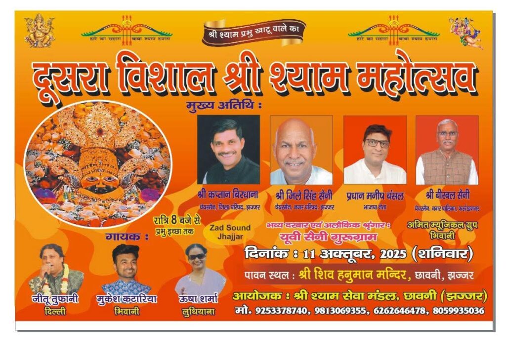 शिव-हनुमान मंदिर छावनी में दूसरा विशाल श्री श्याम महोत्सव आयोजित
