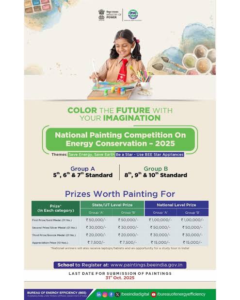 विद्युत मंत्रालय एवं ऊर्जा दक्षता ब्यूरो द्वारा किया जा रहा राष्ट्रीय ऊर्जा संरक्षण चित्रकला प्रतियोगिता 2025 का आयोजन: डीसी