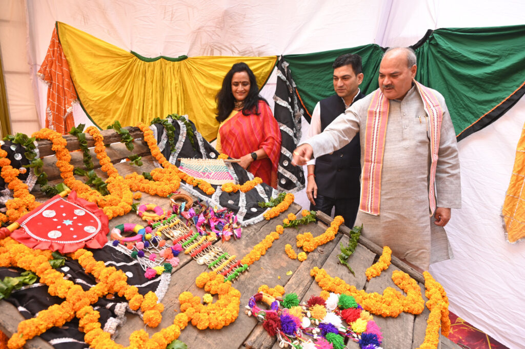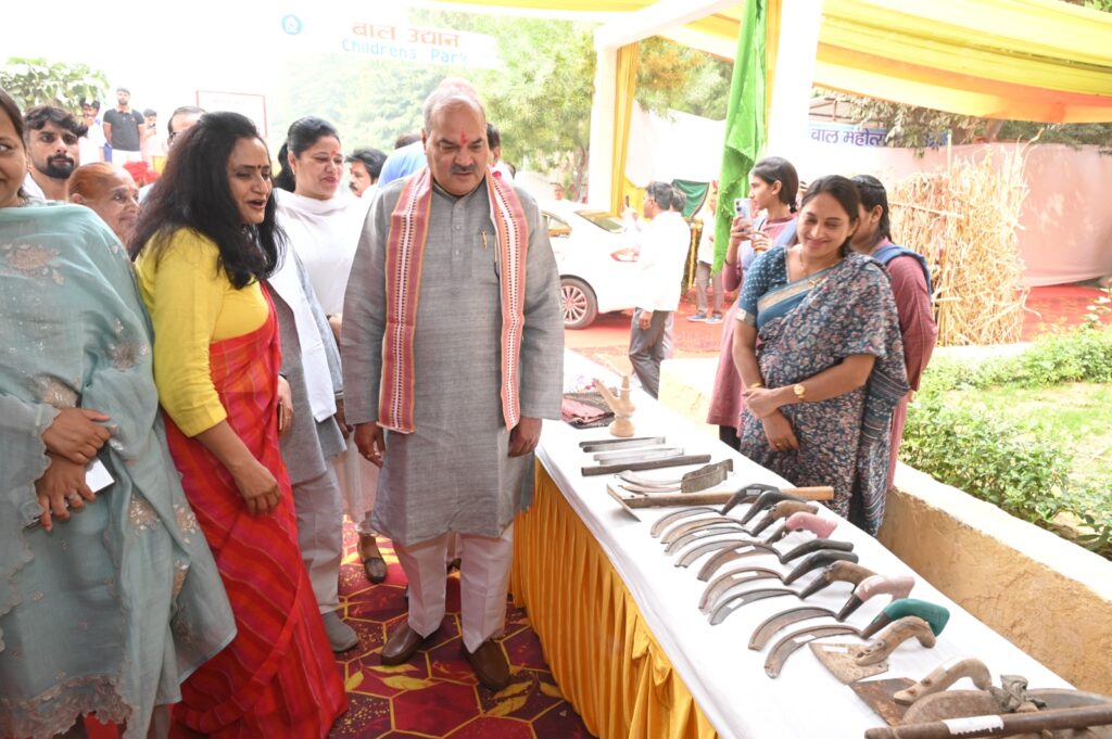 सांस्कृतिक उत्सव में लगाई गई प्रदर्शनी का अवलोकन करते हुए लक्ष्मण सिंह यादव।
