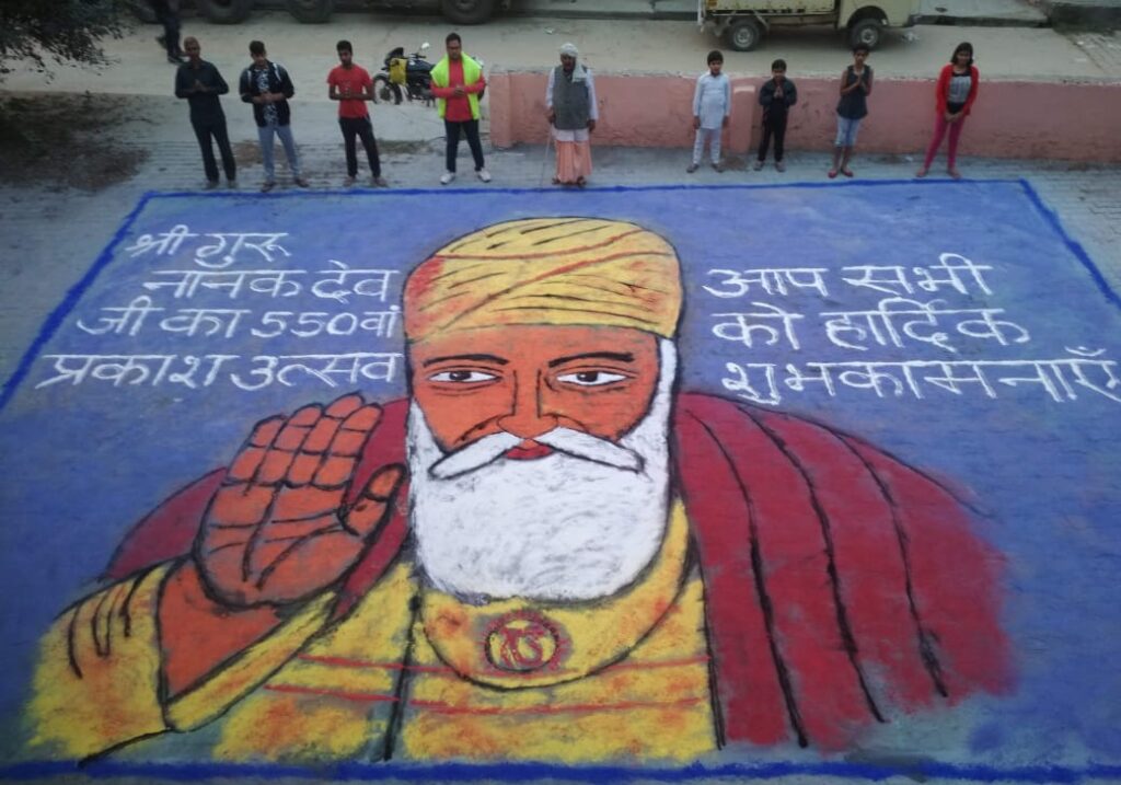 श्री गुरुनानक जी के प्रकाश महोत्सव की पूर्व संध्या पर रंगोली रेखाचित्र बनाकर किया नमन