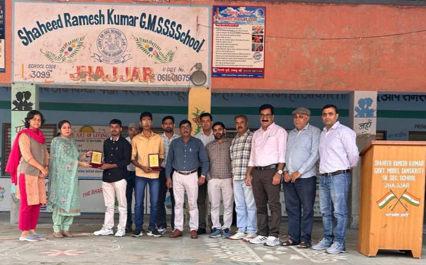 झज्जर, 06 नवम्बर, अभीतक: राजकीय मॉडल संस्कृति वरिष्ठ माध्यमिक विद्यालय झज्जर के कॉमर्स के दो विद्यार्थियों ने सीए फाऊंडेशन और इंटरमीडिएट की परीक्षा पास करके सफलता का प्रथम लहराया है। इसी सत्र में पास होकर निकले निखिल ने जहां सीए फाउंडेशन पास किया वहीं पिछले सत्र में 12वीं करने वाले शिवम ने इस बार सीए इंटरमीडिएट परीक्षा पास करके अपना और विद्यालय का नाम रोशन किया है। दोनों विद्यार्थियों का आज विद्यालय में प्रार्थना सभा में ट्रॉफी भेंट करके सम्मान किया गया। इस अवसर पर दोनों विद्यार्थियों ने विद्यालय के अपने जूनियर विद्यार्थियों को सफलता का मंत्र भी बताया और कहा कि शिक्षकों द्वारा दी जा रही शिक्षा को ध्यान से ग्रहण करना ही पहले मंत्र है तथा मेहनत से निरंतर पढ़ाई करना सफलता का दूसरा मंत्र है। विद्यालय के प्राचार्य जोगेंद्र सिंह के मार्गदर्शन में आज विद्यालय के कॉमर्स विभाग के सभी शिक्षकों के साथ दोनों विद्यार्थियों को सम्मान प्रदान किया गया। शिवम और निखिल ने अपनी सफलता का श्रेय शिक्षकों व अभिभावकों को दिया। इस अवसर पर विद्यालय के समस्त स्टाफ ने दोनों विद्यार्थियों और उनके अभिभावकों को बधाई दी। उल्लेखनीय है कि इससे पहले भी विद्यालय के अनेक विद्यार्थी अपनी सफलता से नाम रोशन कर चुके हैं।