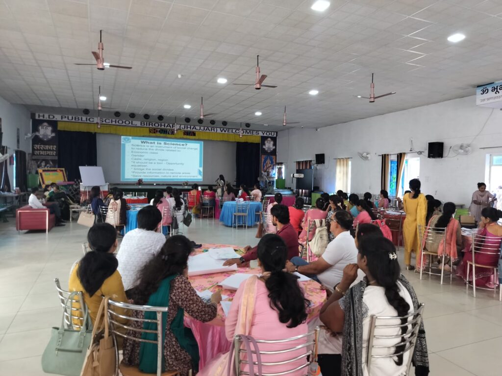 झज्जर, 06 नवम्बर, अभीतक: एच.डी. विद्यालय बिरोहड़ के ऑडिटोरियम में सीबीएसई द्वारा आयोजित दो दिवसीय सैकंडरी विज्ञान क्षमता निर्माण कार्यक्रम का भव्य समापन आज उत्साह और उल्लास के साथ हुआ। इस प्रशिक्षण कार्यक्रम का मुख्य उद्देश्य शिक्षकों की वैज्ञानिक दृष्टिकोण को विकसित करना, उन्हें आधुनिक शिक्षण विधियों से परिचित कराना तथा विज्ञान विषय को छात्रों के लिए अधिक रोचक, उपयोगी और अनुभवात्मक बनाना था। कार्यक्रम में चरखी दादरी, झज्जर एवं गुरुग्राम जिलों के विभिन्न विद्यालयों के विज्ञान शिक्षकों ने बढ़-चढ़कर भाग लिया। पहले दिन प्रशिक्षण की शुरुआत निदेशक बलराज फौगाट, प्राचार्या नमितादास, उप प्राचार्य नवीन सनसनवाल, सीबीएसई रिसोर्स पर्सन एस केजिया कल्पलथा, रजनी आष्ट एवं उपस्थित शिक्षकों द्वारा दीप प्रज्वलन के साथ हुई। एस केजिया ने विज्ञान शिक्षण की नवीन पद्धतियों, प्रयोगात्मक कार्यों और छात्रों की जिज्ञासाओं को प्रोत्साहित करने के उपायों पर विस्तार से चर्चा की। प्रतिभागी शिक्षकों को गतिविधि-आधारित शिक्षण, प्रयोगशाला कार्यों के महत्व, तथा पाठ्यक्रम के व्यावहारिक अनुप्रयोग से संबंधित कई उपयोगी जानकारियाँ दी गईं। विभिन्न समूहों में बंटे शिक्षकों ने मॉडल निर्माण, प्रश्नोत्तरी तथा विचार-विमर्श सत्रों में भाग लिया, जिससे उनका आत्मविश्वास और शिक्षण कौशल और भी प्रखर हुआ। प्रशिक्षण में रजनी आष्ट ने अस्सेस्स्मेंट फोर लर्निंग, साइंटिफिक टेम्पर डेवलपमेंट जैसे महत्वपूर्ण विषयों पर कार्यशालाएँ संचालित कीं। उन्होंने बताया कि विज्ञान विषय केवल तथ्यों का संग्रह नहीं, बल्कि सोचने, परखने और खोज करने की प्रक्रिया है। उन्होंने शिक्षकों को प्रोत्साहित किया कि वे विद्यार्थियों में रचनात्मकता, जिज्ञासा और समस्या समाधान की क्षमता को विकसित करें। इसके साथ ही डिजिटल उपकरणों एवं आईसीटी आधारित शिक्षण विधियों के प्रयोग पर भी विशेष बल दिया गया। स्कूल निदेशक बलराज फौगाट ने सभी प्रतिभागी शिक्षकों को बधाई दी और कहा कि ऐसे क्षमता निर्माण कार्यक्रम नई शिक्षा नीति 2020 के उद्देश्यों को साकार करने में अत्यंत उपयोगी हैं। उन्होंने कहा कि एक सशक्त शिक्षक ही सशक्त समाज का निर्माण कर सकता है। उन्होनें शिक्षकों से आग्रह किया कि वे प्रशिक्षण में सीखी गई नई शिक्षण तकनीकों को अपने विद्यालयों में लागू करें, ताकि छात्रों को गुणवत्तापूर्ण शिक्षा मिल सके। समापन अवसर पर प्रतिभागियों ने अपने अनुभव साझा किए और बताया कि इस दो दिवसीय कार्यक्रम ने उनके ज्ञान को समृद्ध किया है। स्कूल निदेशक बलराज फौगाट ने सीबीएसई रिसोर्स पर्सन और सम्मिलित विद्यालयों के शिक्षकों को मोमेंटो देकर एच.डी. विद्यालय की तरफ स