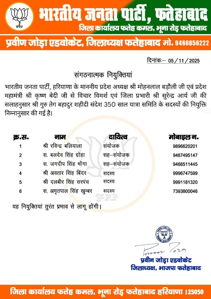 इस अवसर पर भारतीय जनता पार्टी ग्रामीण मंडल के नवनियुक्त शक्ति प्रमुखों ने ऊर्जा मंत्री श्री अनिल विज से मुलाकात की और उन्हें धन्यवाद ज्ञापित किया। उन्होंने कहा कि पार्टी द्वारा जो दायित्व उन्हें सौंपा गया है, वे उसे पूरी निष्ठा और जिम्मेदारी से निभाएँगे। ऊर्जा मंत्री श्री विज ने नवनियुक्त शक्ति प्रमुखों को संगठन के प्रति समर्पण भावना से कार्य करने का आह्वान किया और उन्हें शुभकामनाएँ दीं। इस अवसर पर ग्रामीण मंडल प्रधान विकास बहगल, महासचिव भरत कोछड़, किरणपाल चैहान, दीपक दीप, अनुज यादव, उद्यम सिंह, सचिन धीमान, रविंद्र सिंह, अमरनाथ, डिम्पल राणा, प्रेमनाथ, उमेद सिंह सहित अनेक कार्यकर्ता उपस्थित रहे।