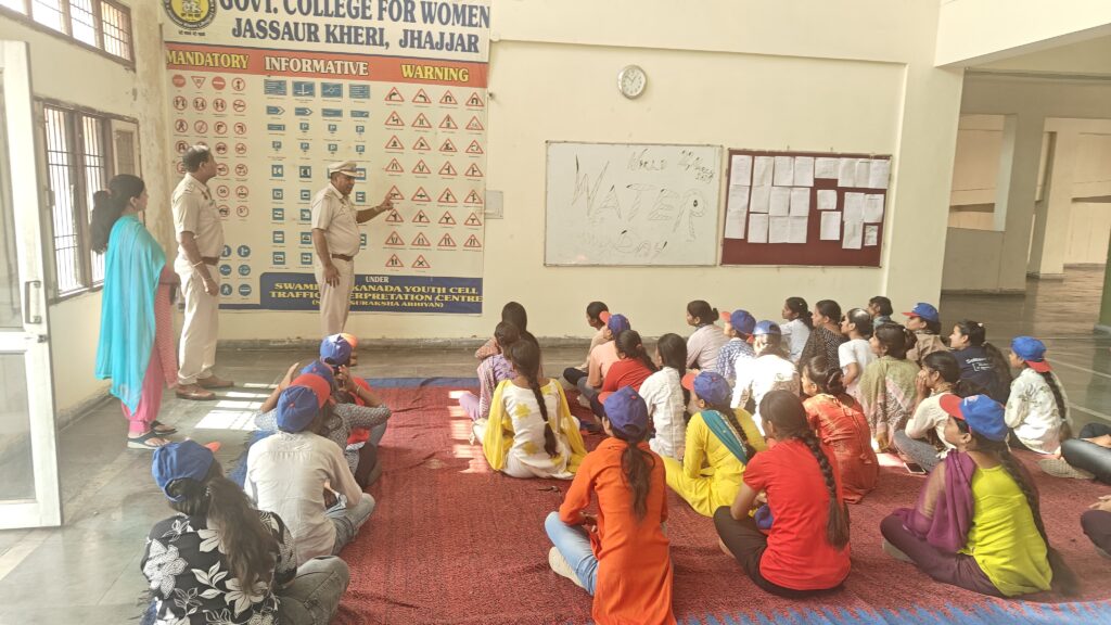बहादुरगढ़, 06 नवम्बर, अभीतक: राजकीय कन्या महाविद्यालय जसौर खेड़ी (झज्जर) में सड़क सुरक्षा, नशा मुक्ति, साइबर क्राइम तथा महिला सुरक्षा विषय पर एक जागरूकता कार्यक्रम का आयोजन किया गया। इस कार्यक्रम में सड़क सुरक्षा शारवा झज्जर के निरीक्षक सतीश कुमार ने मुख्य वक्ता के रूप में छात्राओं को संबोधित किया। उन्होंने छात्राओं को सड़क सुरक्षा से जुड़े नियमों की जानकारी देते हुए यातायात के दौरान सावधानी बरतने की अपील की। उन्होंने बताया कि वाहन चलाते समय हेलमेट और सीट बेल्ट का प्रयोग अनिवार्य है तथा मोबाइल फोन का उपयोग दुर्घटनाओं का प्रमुख कारण बन रहा है, इससे बचना चाहिए। इस दौरान निरीक्षक सतीश कुमार ने नशा मुक्ति पर बोलते हुए कहा कि नशा न केवल व्यक्ति के स्वास्थ्य के लिए हानिकारक है, बल्कि परिवार और समाज को भी प्रभावित करता है। उन्होंने छात्राओं से समाज में नशा उन्मूलन का संदेश फैलाने का आह्वान किया। साथ ही, उन्होंने साइबर क्राइम से बचाव के उपाय बताए और सोशल मीडिया के सुरक्षित उपयोग पर बल दिया।महिला सुरक्षा पर चर्चा करते हुए उन्होंने छात्राओं को अपने अधिकारों की जानकारी दी और किसी भी प्रकार की छेड़छाड़ या अपराध की स्थिति में तुरंत पुलिस हेल्पलाइन नंबर 1091 और 112 पर संपर्क करने की सलाह दी।