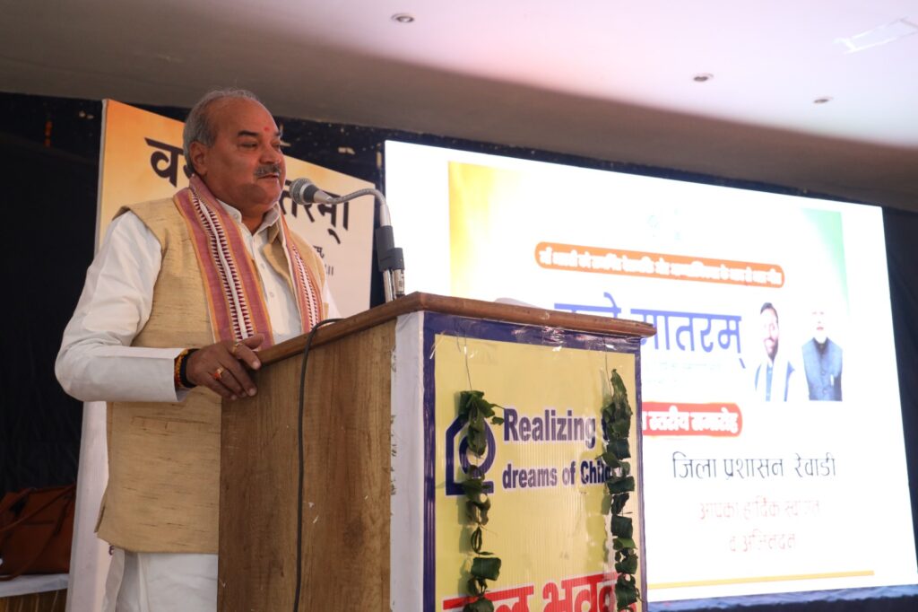 कार्यक्रम में प्रदेश के मुख्यमंत्री श्री नायब सिंह सैनी भी वर्चुअल माध्यम से जुड़े। उन्होंने युवाओं को देश की समृद्ध सांस्कृतिक और स्वदेशी परंपराओं को अपनाने के लिए प्रेरित किया तथा स्वदेशी अपनाने की शपथ दिलाई। मुख्यमंत्री ने कहा कि वंदे मातरम केवल गीत नहीं, बल्कि भारत माता के प्रति समर्पण, त्याग और गौरव का अमूल्य प्रतीक है।