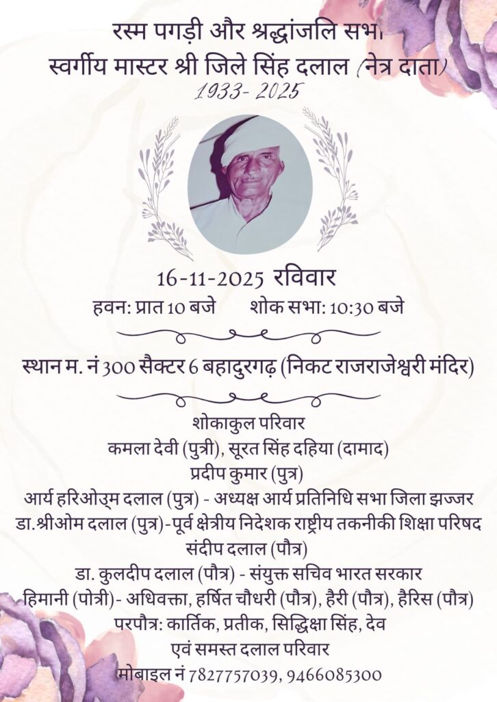 वरिष्ठ पत्रकार श्याम अहलावत की माता की श्रद्धांजलि सभा में शामिल हुए अनेक नेता, पत्रकार व गणमान्य लोग