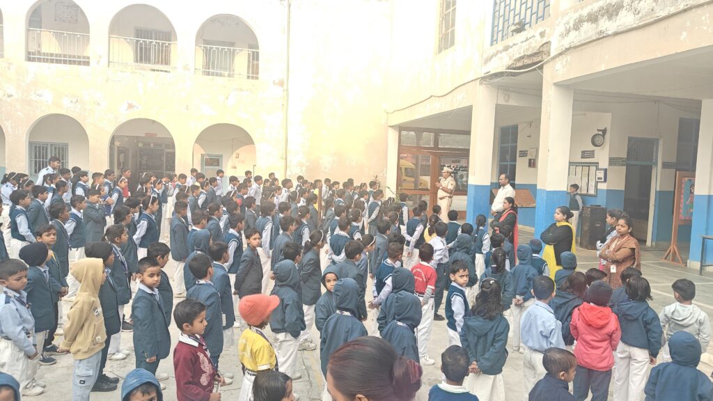 विद्यार्थियों को निरीक्षक सतीश कुमार ने यातायात के नियम, नशे के दुष्प्रभाव पढ़ाई के महत्व के बारे में दी जानकारी