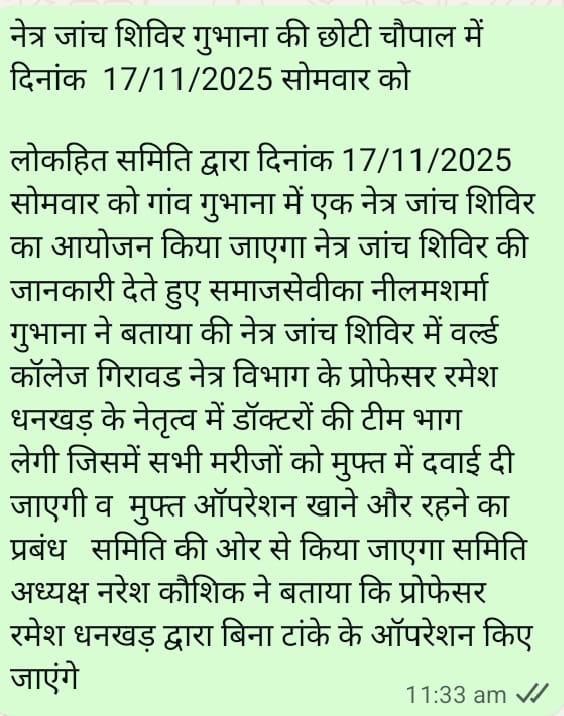 झज्जर, 12 नवम्बर, अभीतक: आमजन की समस्याओं के त्वरित समाधान और सरकारी सेवाओं को सुगम बनाने के उद्देश्य से 13 नवंबर (गुरुवार को) सुबह 10 से 12 बजे तक (दो घंटे) जिला व उपमंडल स्तर पर समाधान शिविरों का आयोजन होगा। जिला स्तरीय समाधान शिविर लघु सचिवालय स्थित कॉन्फ्रेंस रूम में आयोजित किया जाएगा। वहीं, उपमंडल बहादुरगढ़, बेरी व बादली में लघु सचिवालय में संबंधित एसडीएम द्वार जन समस्याएं सुनी जाएंगी। उपायुक्त स्वप्निल रविंद्र पाटिल ने बताया कि इन शिविरों में विभिन्न विभागों के अधिकारी मौजूद रहेंगे और नागरिकों की शिकायतों व मांगों को मौके पर ही सुना जाएगा। डीसी ने आमजन से अपील की है कि वे अपनी समस्याओं के त्वरित समाधान के लिए शिविरों में अधिक से अधिक संख्या में पहुंचें और आवश्यक दस्तावेज साथ लाएं।