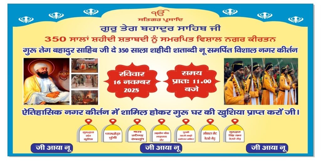 श्री गुरु तेग बहादुर जी के 350वें शहीदी वर्ष पर ‘हिंद की चादर’ शहीदी यात्रा आज पहुंचेगी रेवाड़ी