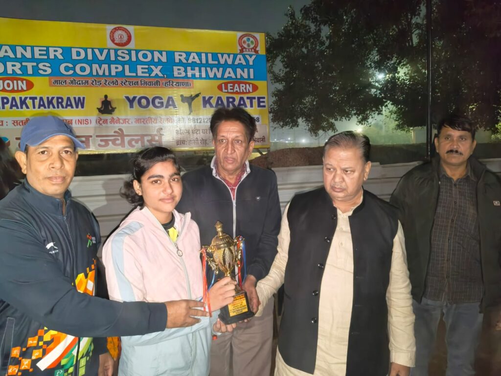 भिवानी, 15 नवंबर, अभीतक:- जिला सेपक टकरा संघ भिवानी के महासचिव व बी.डी.एस.ए रेलवे अकादमी भिवानी के चीफ कोच सतबीर सिंह देहरान ने बताया कि 4 नवंबर से 5 नवंबर तक सीनियर स्कैंडरी मॉडल स्कूल जिला फतेहाबाद में 14वीं सब जूनियर ओर 18वीं जूनियर राज्य स्तरीय सेपक टकरा प्रतियोगिता का आयोजन किया गया। जिसमें भिवानी जिले ने रेगु, क्वॉड व डबल अलग अलग इवेंट में 7 गोल्ड, 3 सिल्वर और 2 ब्रोंज मैडल जीतकर भिवानी काशी का नाम रोशन किया। बतौर मुख्य अतिथि के रूप में पहुंचे भिवानी विधायक घनश्याम सर्राफ ने खिलाड़ियों के उज्जवल भविष्य की कामना करते हुए उन्हें सम्मानित किया ओर आशीर्वाद दिया। विधायक घनश्याम सर्राफ ने कहा की सेपक टकरा खिलाड़ियों को खेल की हर सुविधा उपलब्ध कराए जाएगी और साथ में किसी भी तरह की जिला व राज्य प्रतियोगिता या किसी भी तरह के प्रशिक्षण कैंप के लिए जी लिट्रा स्कूल हमेशा तैयार रहेगा। जिला सेपक टकरा संघ के अध्यक्ष भानु प्रकाश ने संयुक्त रूप से बताया कि कल सभी खिलाड़ियों को रेलवे अकादमी भिवानी में विधायक घनश्याम सर्राफ ने फूल माला व स्मृति चिन्ह देकर सम्मानित किया। प्रधान भानु प्रकाश ने बताया कि विजेता खिलाड़ियों में सब जूनियर लड़के वर्ग मेंरू-अमन, धैर्य देहरान, शौर्य, एकांश, पुनीत, कपीश, हर्ष, आयु, यानिस, धैर्य शर्मा, गौतम, वहीं लड़कियों में तनिका, गरिमा, पलक, इशूका, रूपाली, अंशुल, माही ओर राखी। जूनियर लड़के वर्ग में अमन, शिवम, सचिन, रिंकू, जश्विर, अंकित, राहुल, जतिन, हरीश। वहीं लड़की वर्ग में रिया, भतेरी, दुवा, पारुल, अंजू, रजनी, कोमल, मानसी। टीम कोच के लिए मोनू गोयत, धीरज, अब्दुल, अंजली, संदीप, साहिल,व कोच प्रीति को कार्यभार सौंपा गया है। वहीं सुनीता देवी भिवानी जिले की तरफ से रैफरी कोच बनी। मंच संचालन देविका ओर उन्नति ने किया। इस अवसर जिला सेपक टकरा संघ भिवानी के उपाध्यक्ष पार्षद हर्षदीप जगदीप शर्मा, कानूनी सलाहकार अखिल कुमार, सह सचिव मोनू कितलाना, सह सचिव गौरव वोहरा, अरुण, सिंह तंवर, नीतू मैडम, राष्ट्रीय प्रतिभा विकास मंच के पदाधिकारी सज्जन इटकान, ठेकेदार राजेश खटक, आयकर विभाग से सोनू बूमरा महेश फौजी, सीता देवी, संजय शर्मा, ममता, राजन, जितेंद्र, आदि खेल प्रेमी उपस्थित रहे।