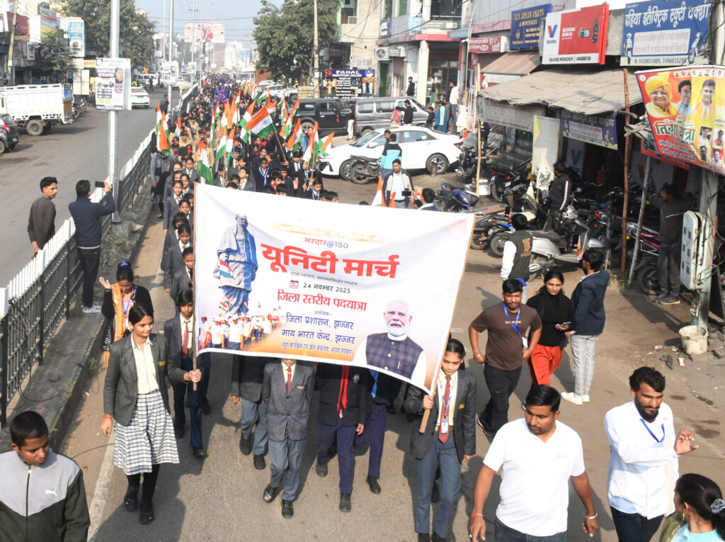 झज्जर, 24 नवंबर, अभीतक:- लौह पुरुष सरदार वल्लभभाई पटेल की 150वीं जयंती के उपलक्ष्य में उपायुक्त स्वप्निल रविंद्र पाटिल के दिशा-निर्देशन में माय भारत केंद्र द्वारा शहर में भव्य पद यात्रा का आयोजन किया गया। राष्ट्रीय एकता, अखंडता, एक भारतदृश्रेष्ठ भारत” और आत्मनिर्भर भारत के संदेश से ओतप्रोत इस पद यात्रा ने पूरे शहर के माहौल को देशभक्ति के रंग में रंग दिया। कार्यक्रम में डीएमसी डॉ. सुशील कुमार एवं सीटीएम नमिता कुमारी मुख्य अतिथि के रूप में शामिल हुए। मुख्य अतिथियों ने सरदार पटेल की प्रतिमा पर पुष्पांजलि अर्पित कर कार्यक्रम का शुभारंभ किया। इस अवसर पर स्कूलों के विद्यार्थियों द्वारा शानदार सांस्कृतिक प्रस्तुतियां दी गई, जिनमें देशभक्ति गीत और राष्ट्रनिष्ठ झांकियां शामिल रहीं। अपने संबोधन में डीएमसी डॉ. सुशील कुमार ने कहा कि सरदार पटेल का पूरा जीवन त्याग, राष्ट्र-सेवा और एकता की भावना का प्रतीक रहा है। उन्होंने कहा कि 562 रियासतों को एक सूत्र में पिरोकर आधुनिक भारत की नींव रखने का श्रेय सरदार पटेल को जाता है। आज की पद यात्रा युवाओं को उनके जीवन से प्रेरणा लेने का अवसर प्रदान करती है। सीटीएम नमिता कुमारी ने कहा कि सरदार पटेल की जयंती के अवसर पर निकाली गई यह पद यात्रा राष्ट्रीय एकता के प्रति हमारी प्रतिबद्धता को मजबूत करती है। उन्होंने कहा कि भारत की अखंडता और सुरक्षा के लिए सरदार पटेल का योगदान अमूल्य है और युवा पीढ़ी को उनके मार्गदर्शन से देशहित में कार्य करना चाहिए। मुख्य अतिथियों ने हरी झंडी दिखाकर पद यात्रा को रवाना किया। यात्रा स्टेडियम से प्रारंभ होकर भगत सिंह चैक, अंबेडकर चैक, बीकानेर चैक एवं पुरानी तहसील मार्ग से होती हुई पुनः स्टेडियम में सम्पन्न हुई। मार्ग में विभिन्न संगठनों, नागरिकों एवं दुकानदारों ने पुष्प वर्षा और तिरंगे झंडों के साथ पद यात्रा का उत्साहपूर्वक स्वागत किया। इस मौके पर माय भारत केंद्र के जिला युवा अधिकारी बृजेश कोशिक, डिप्टी डीईओ रतेंद्र कुमार व अनिल शर्मा, ईओ (नगर परिषद) बहादुरगढ़ अरुण नांदल, ईओ (नगर परिषद) झज्जर देवेंद्र कुमार, डीएसओ सतेंद्र कुमार, हास्य कवि मा. महेंद्र के अलावा काफी संख्या में गणमान्य व्यक्ति मौजूद रहे।