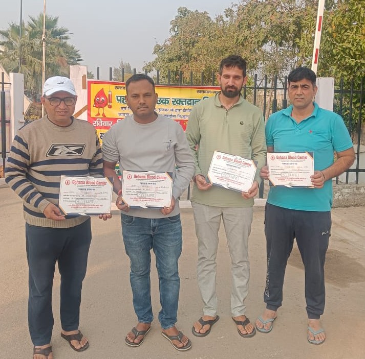 झज्जर, 24 नवंबर, अभीतक:- जिस दान से किसी दूसरे जान बचाई जा सकती है उसे महादान कहा जाता है वह रक्तदान। यह कहना है 46 वी बार रक्तदान करने वाले आनन्द कुमार। विजयलक्ष्मी सोसाइटी में रक्त दान कैंप गोहाना ब्लड बैंक की तरफ से लगाया गया था।जिसमें 38 लोगों ने रक्तदान किया। विशेष कुमार अमित कुमार, विवेक राणा ने संयुक्त रूप से बताया कि रक्तदान करने से शरीर में कोई कमजोरी आती है यह लोगो का बहम है बल्कि रक्तदान करने से अनेकों बीमारियों से बचा जा सकता है। बी पी, हार्ट अटैक, शुगर, नस ब्लॉक, थायराइड, जैसी भयंकर बीमारियां फैलने का खतरा कम हो जाता है। इसलिए स्वस्थ मनुष्य को साल में कम से कम दो बार रक्तदान जरूर से जरूर करना चाहिए ताकि जरूरतमंद लोगों को रक्त समय पर मिल जाए और उनकी जान बचाई जा सके।