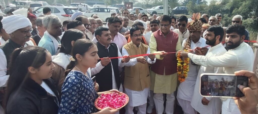 गांव खेड़ी जट्ट में ज्ञानो देवी धर्मपत्नी दीनबंधु छोटूराम के नाम पर नवनिर्मित द्वार का उद्घाटन करते हुए केंद्रीय खाद्य मंत्री प्रह्लाद जोशी और भाजपा राष्ट्रीय सचिव औमप्रकाश धनखड़ साथ में क्षेत्र की सरदारी।