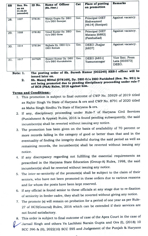 हरियाणा आवश्यक सेवा अनुरक्षण अधिनियम, 1974 (1974 का 40) की धारा 4 (क) की उप-धारा (1) के तहत हड़ताल पर लगाई रोक